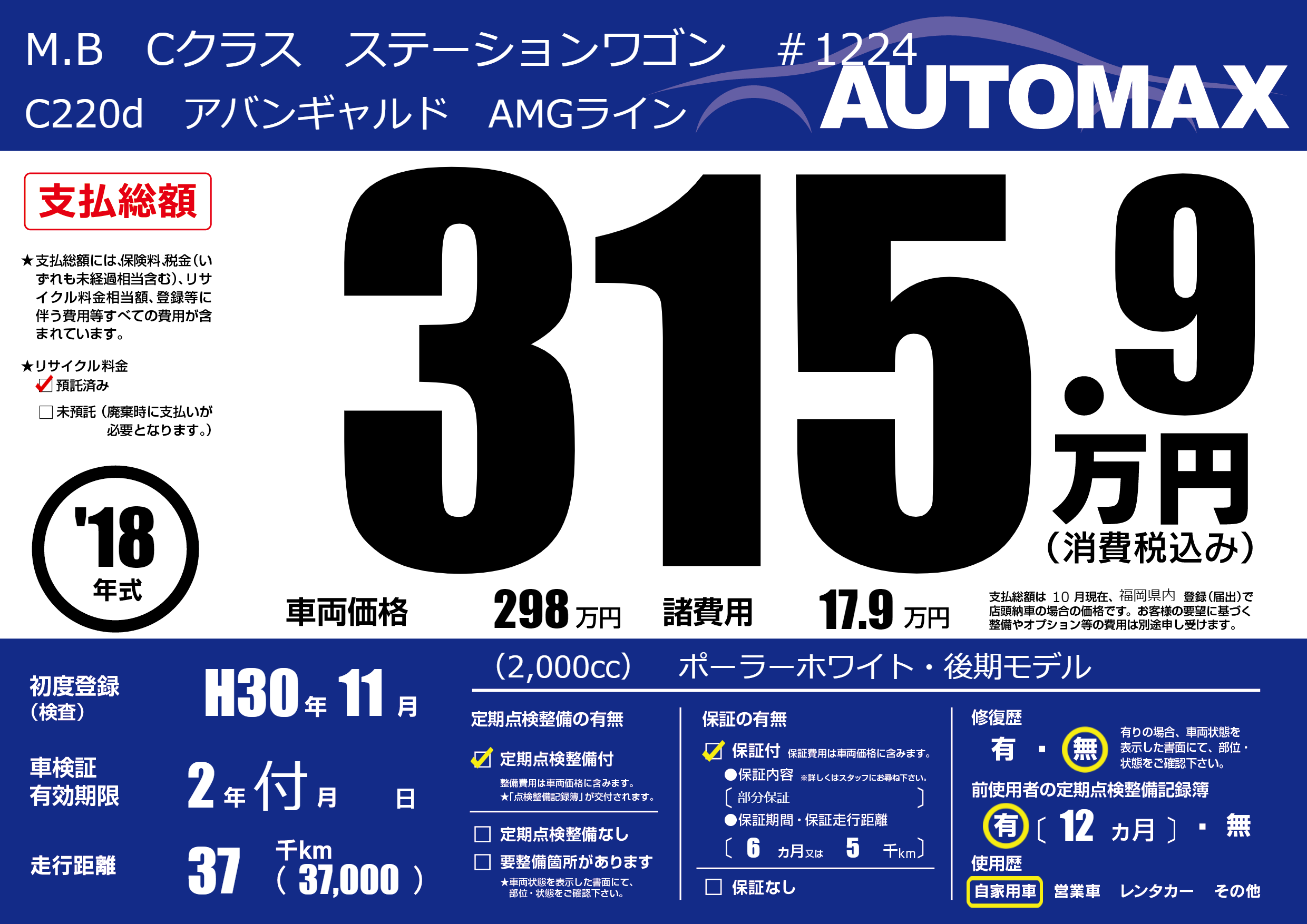 | 初年度登録 | H30年11月 | ||
