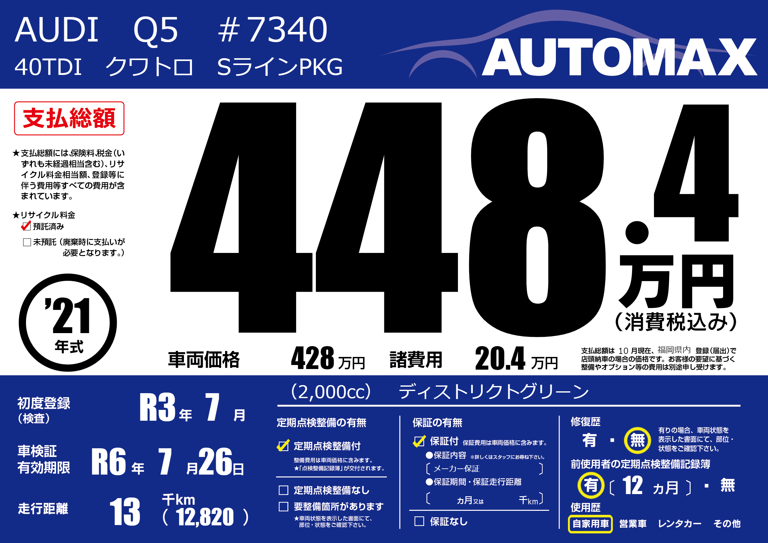 | 車名 | AUDI Q5 #7340 | グレード ミッション 排気量 |