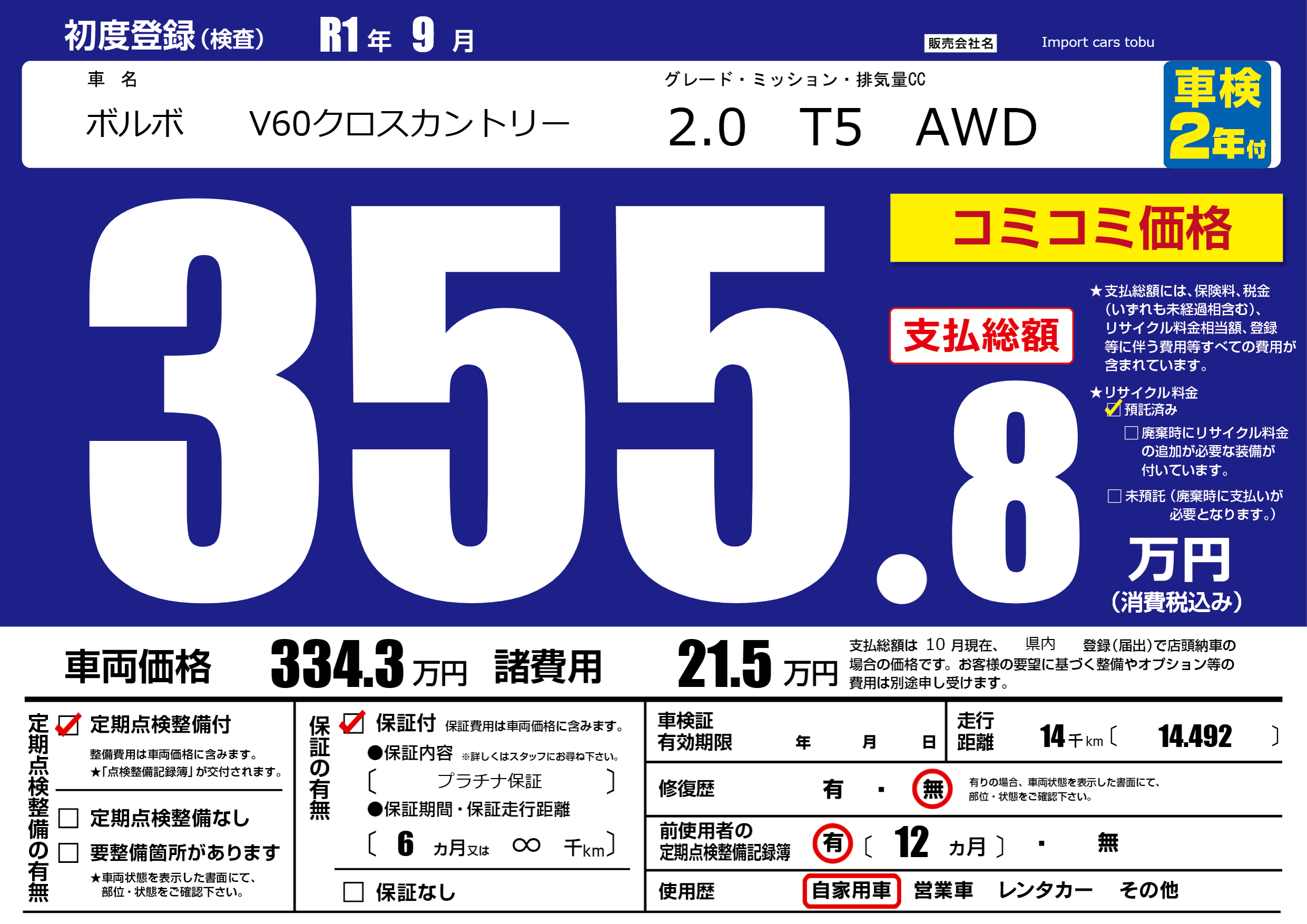 | 定期点検整備 | 定期点検整備あり | ||