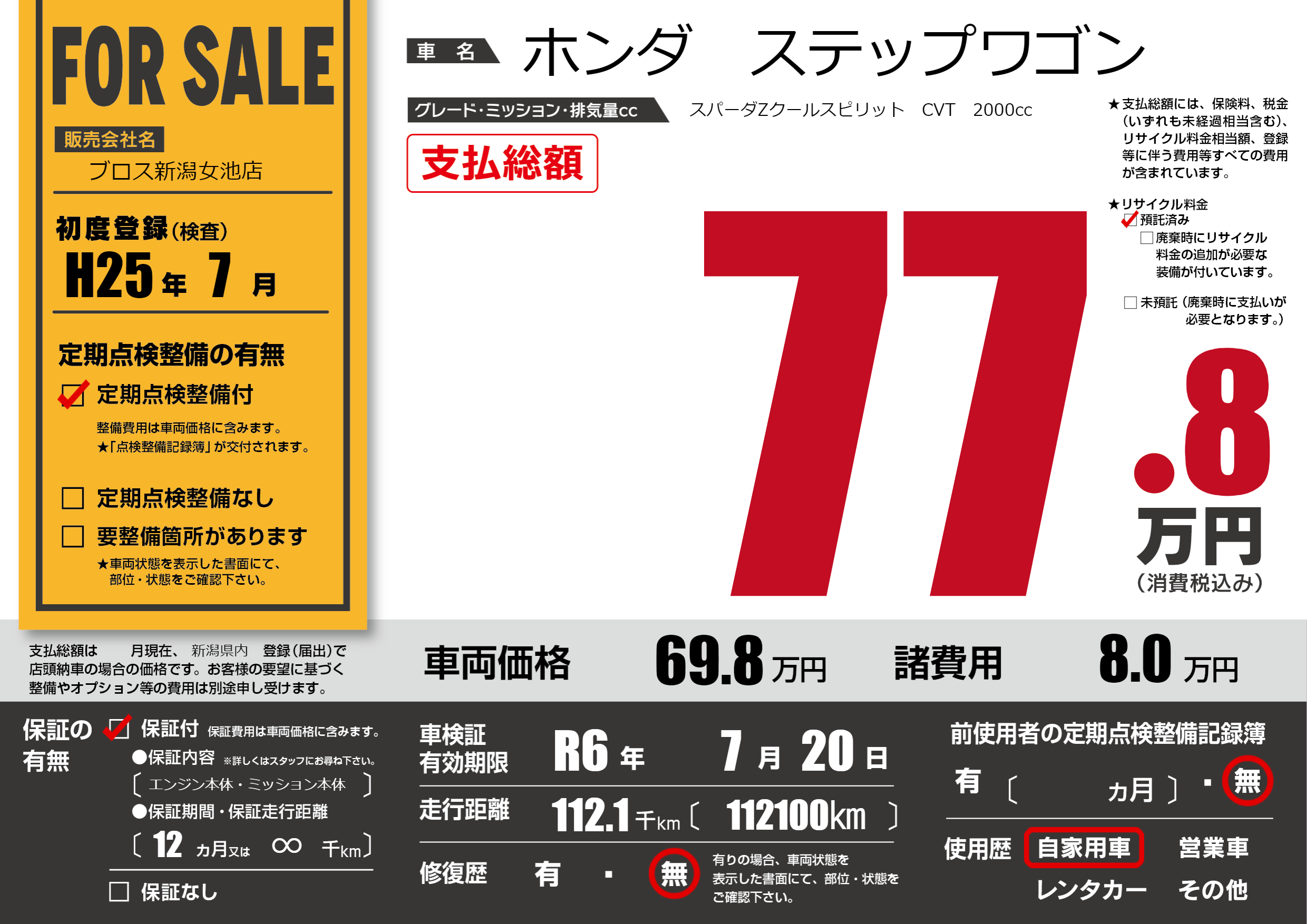 | 走行キロ | 11.2万km | 初年度登録 | H25年7月 |