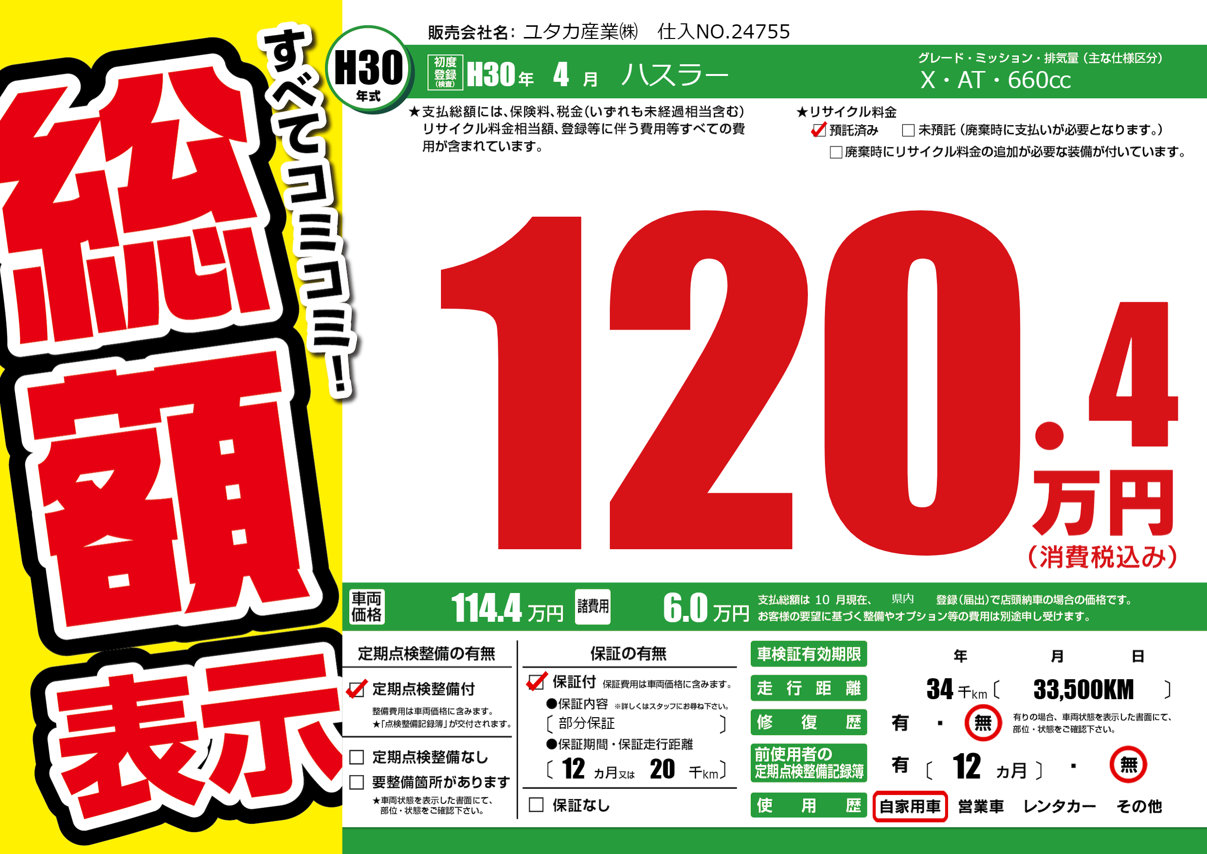 | 車名 | ハスラー | グレード ミッション 排気量 |