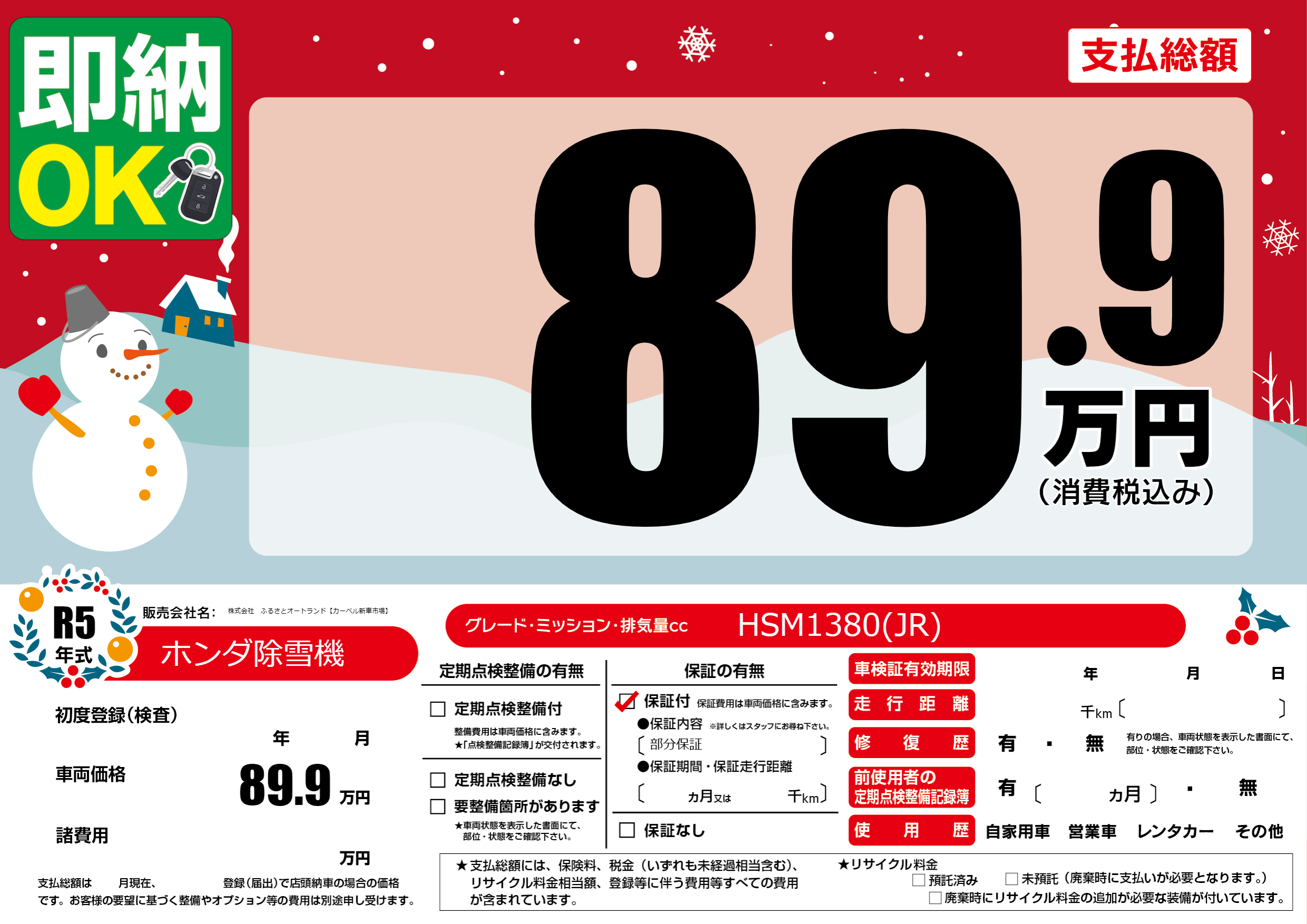 | 車名 | ホンダ除雪機 | グレード ミッション 排気量 |