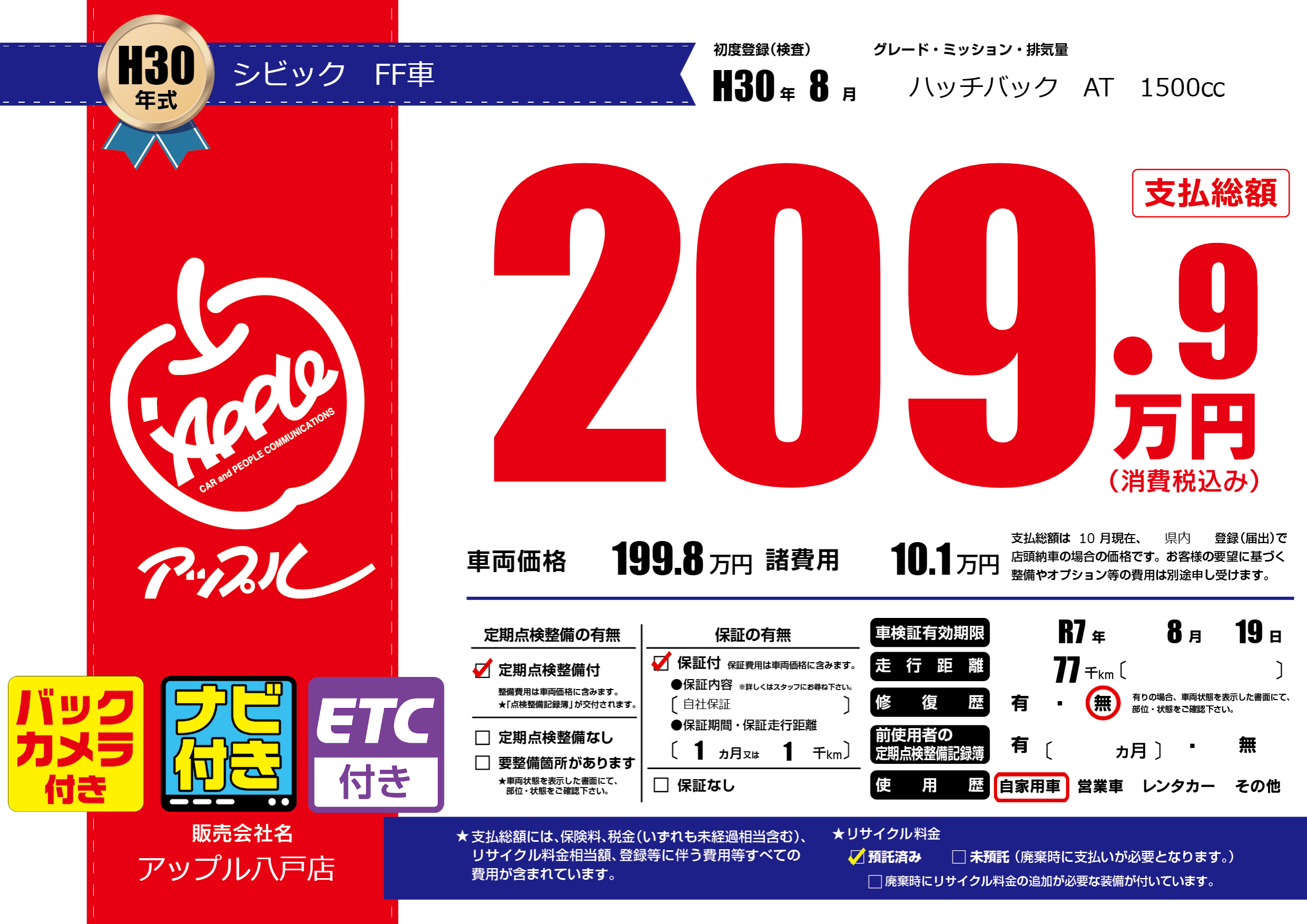 | 車名 | シビック FF車 | グレード ミッション 排気量 |
