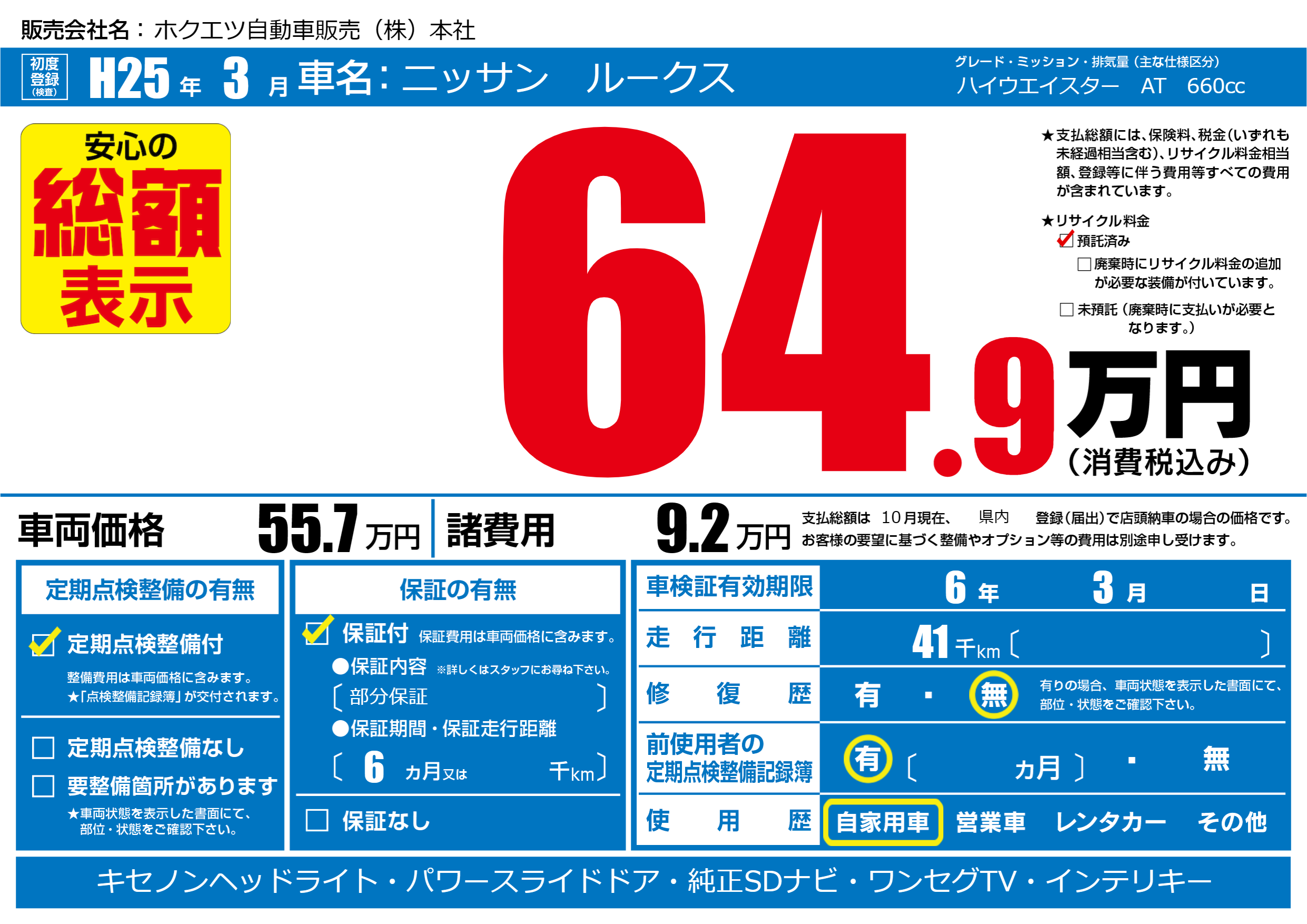 | 定期点検整備 | 定期点検整備あり | ||