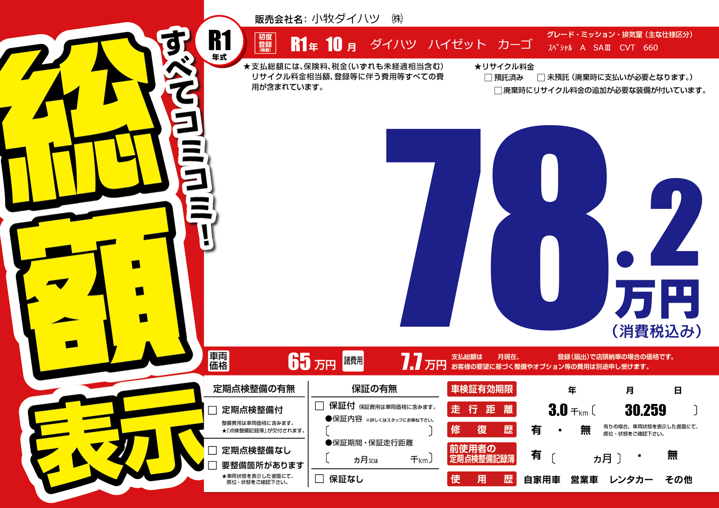 | 車検制限 | - 年 - 月 - 日 | ||