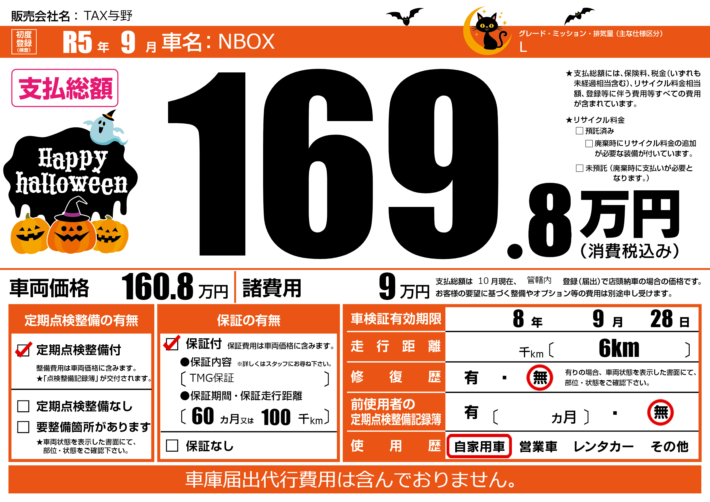 | 走行キロ | - | 初年度登録 | R5年9月 |