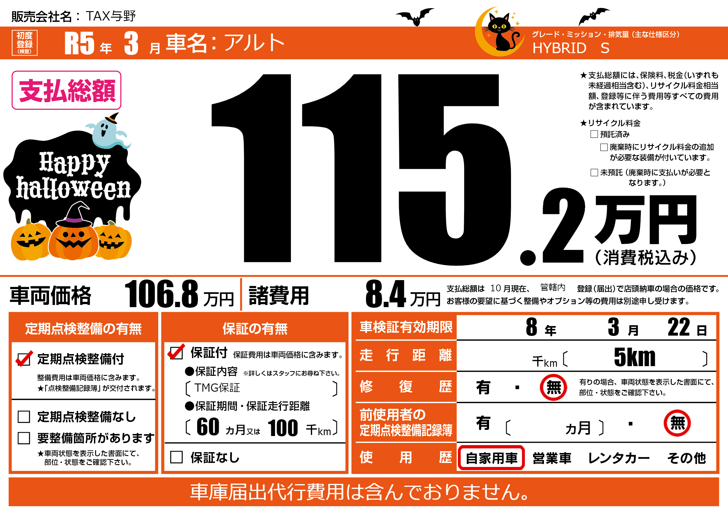 | 走行キロ | - | 初年度登録 | R5年3月 |
