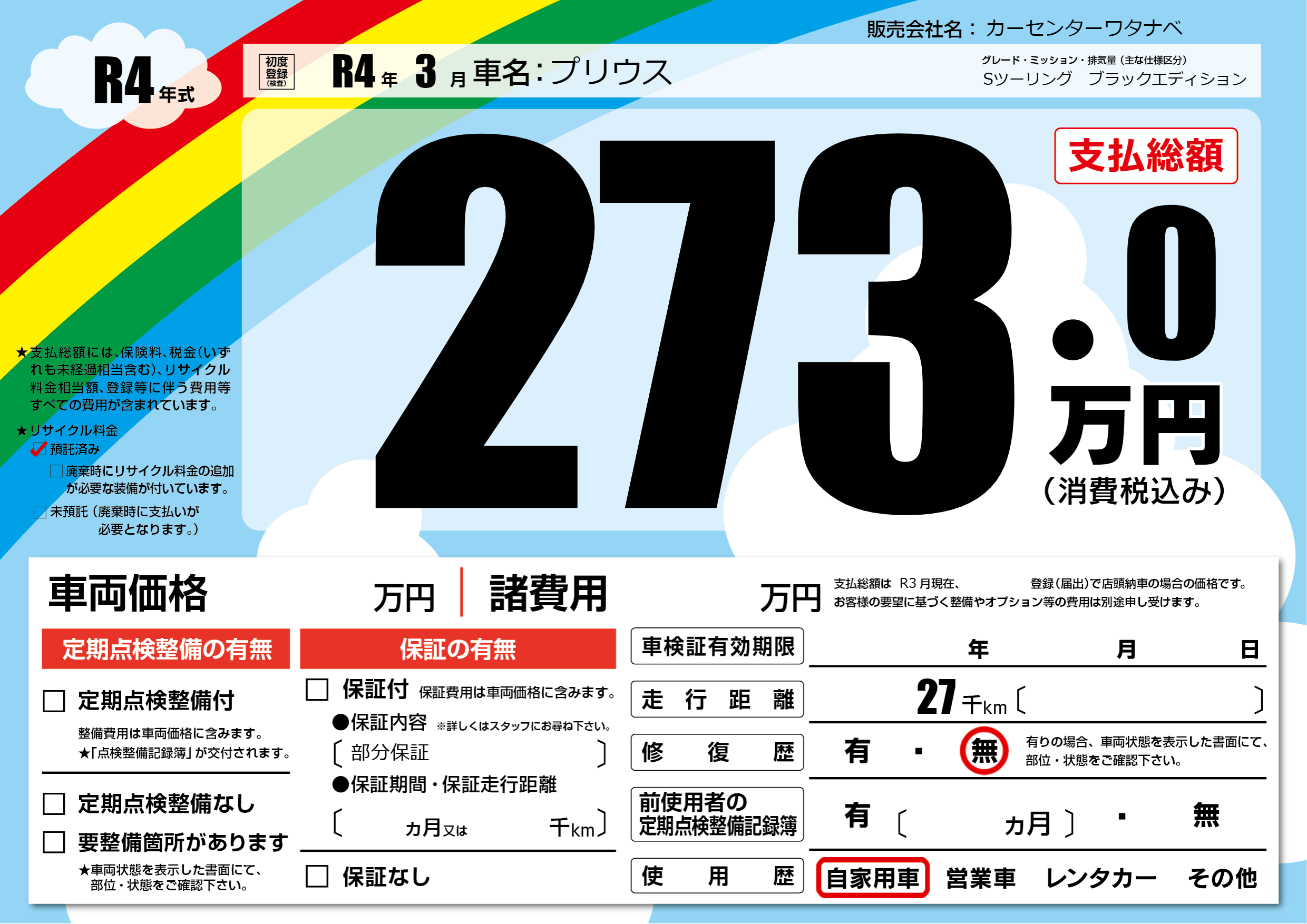 | 車名 | プリウス | グレード ミッション 排気量 |