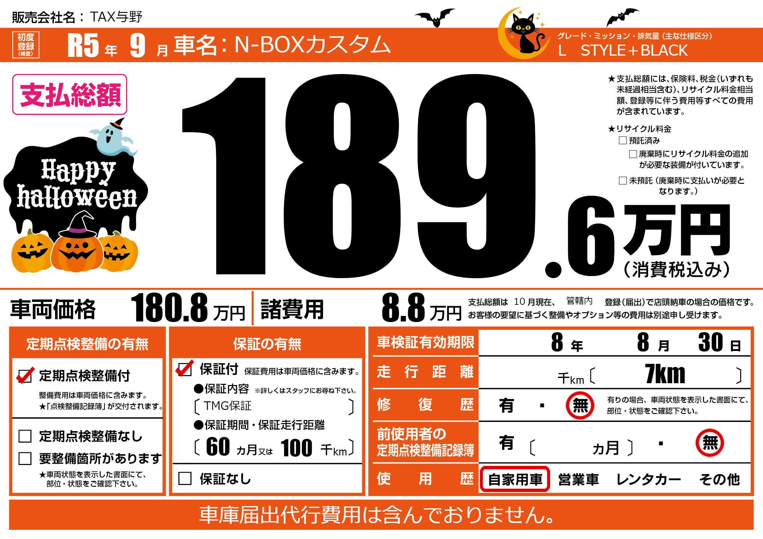 | 走行キロ | - | 初年度登録 | R5年9月 |