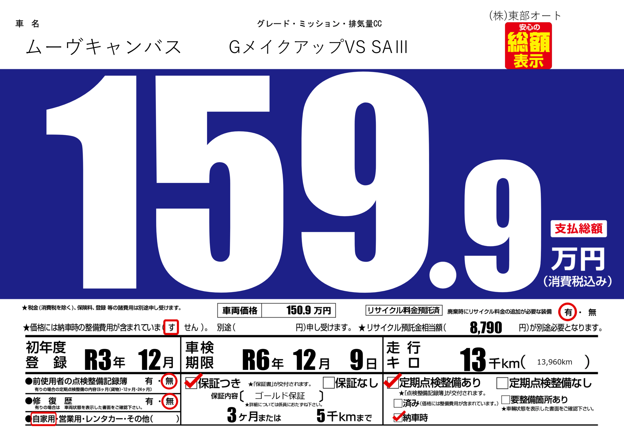 保証付き 保証内容( ゴールド保証) 3ヶ月または(5)千kmまで |