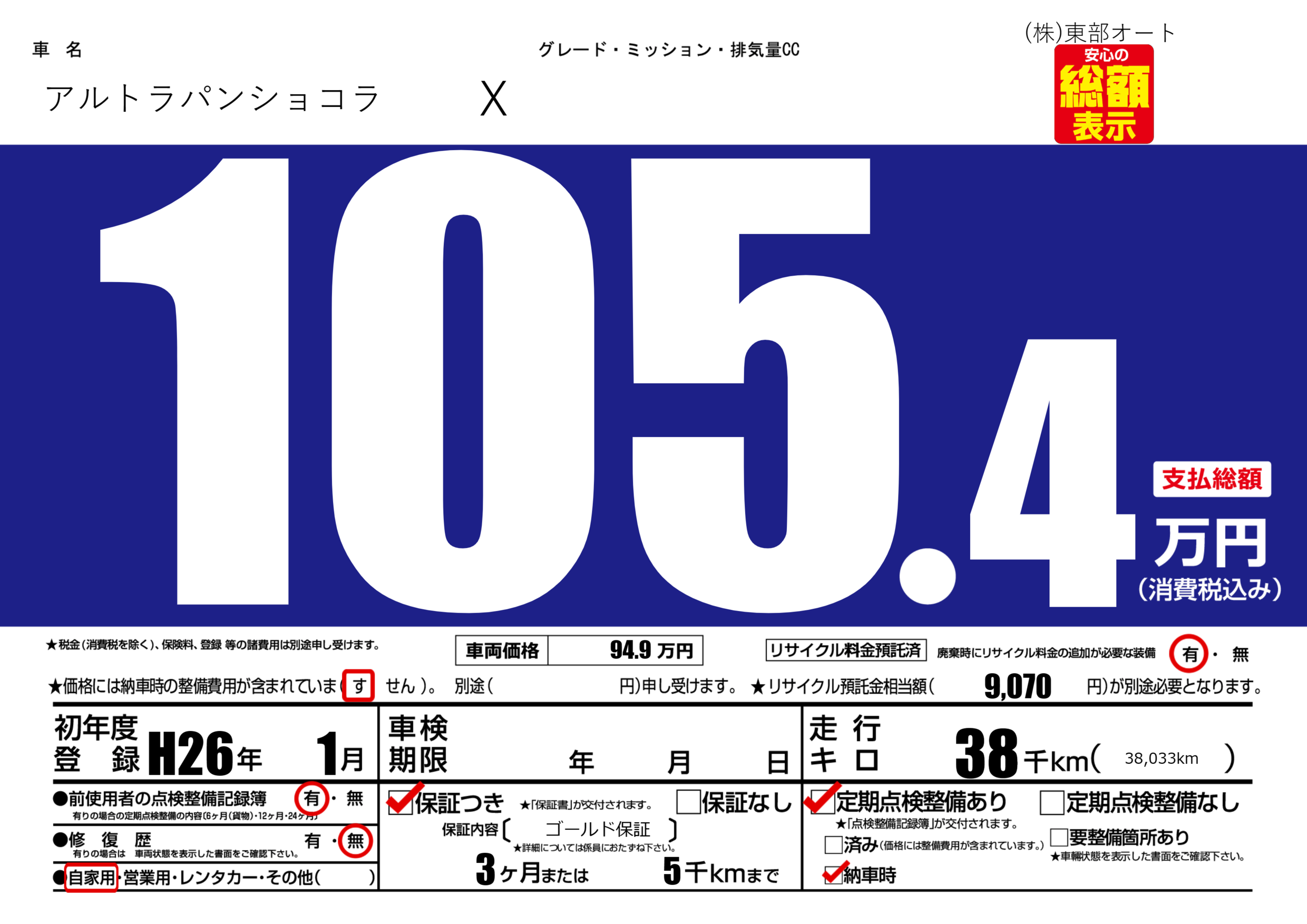 保証付き 保証内容( ゴールド保証) 3ヶ月または5千km |