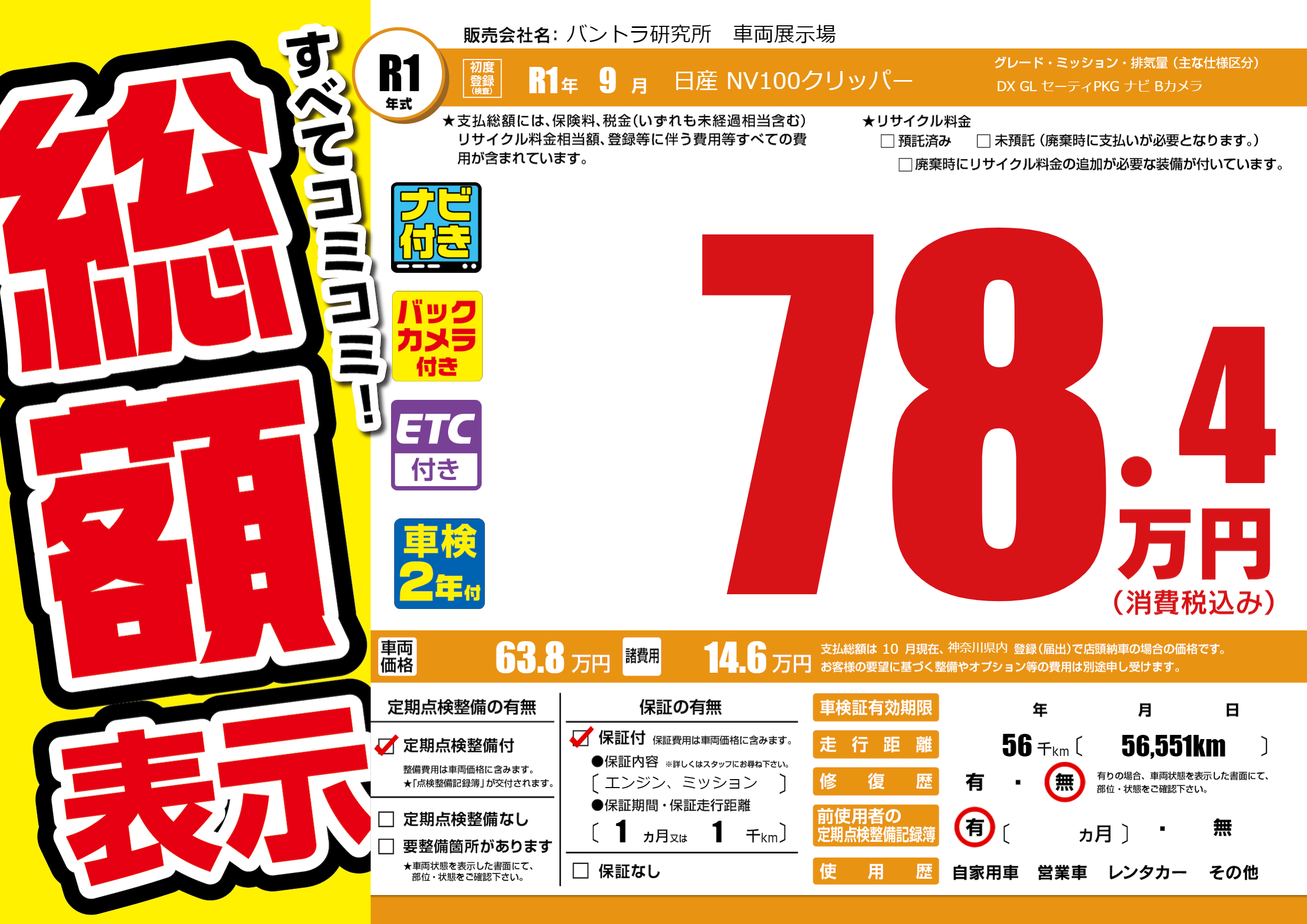| 車名 | 日産 NV100クリッパー | グレード ミッション 排気量 |