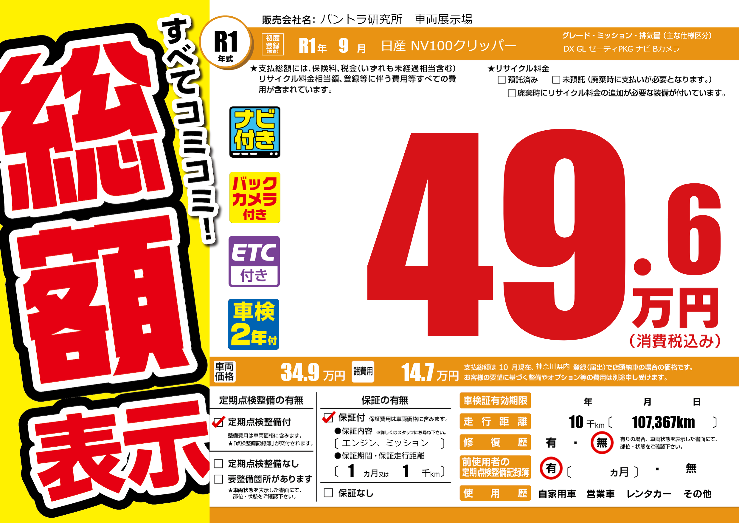 | 車名 | 日産 NV100クリッパー | グレード ミッション 排気量 |