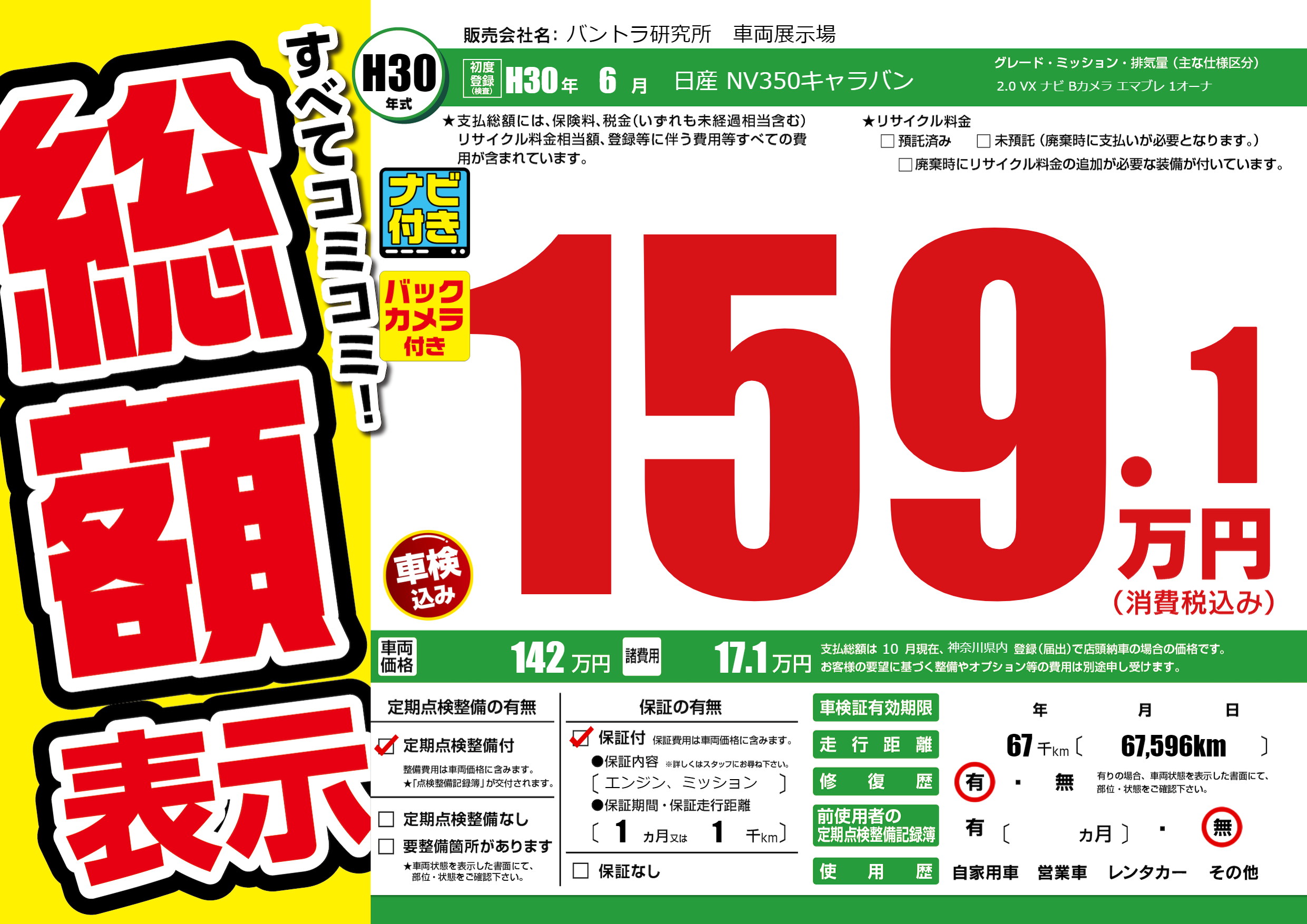 | 定期点検整備 | 定期点検整備あり | ||