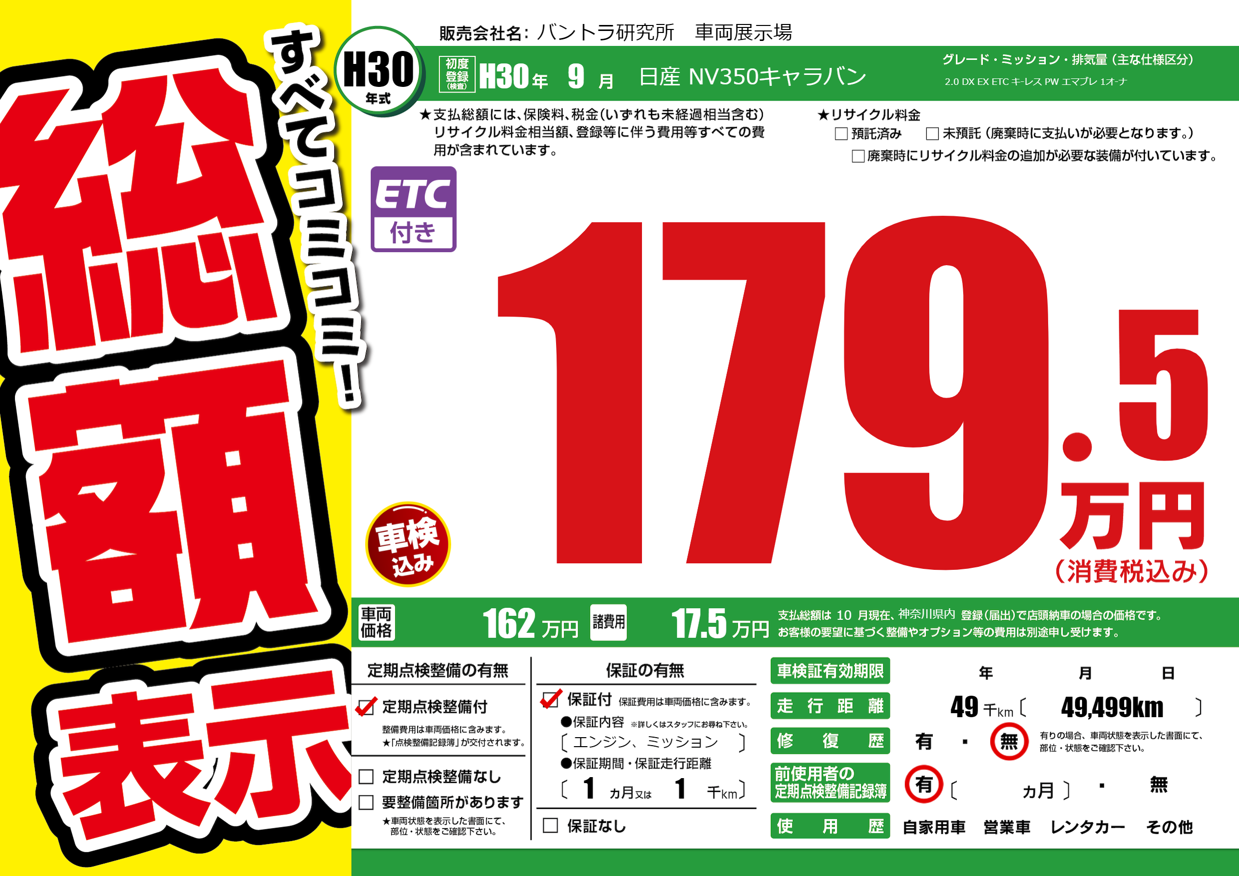 | 車名 | 日産 NV350キャラバン | グレード ミッション 排気量 |