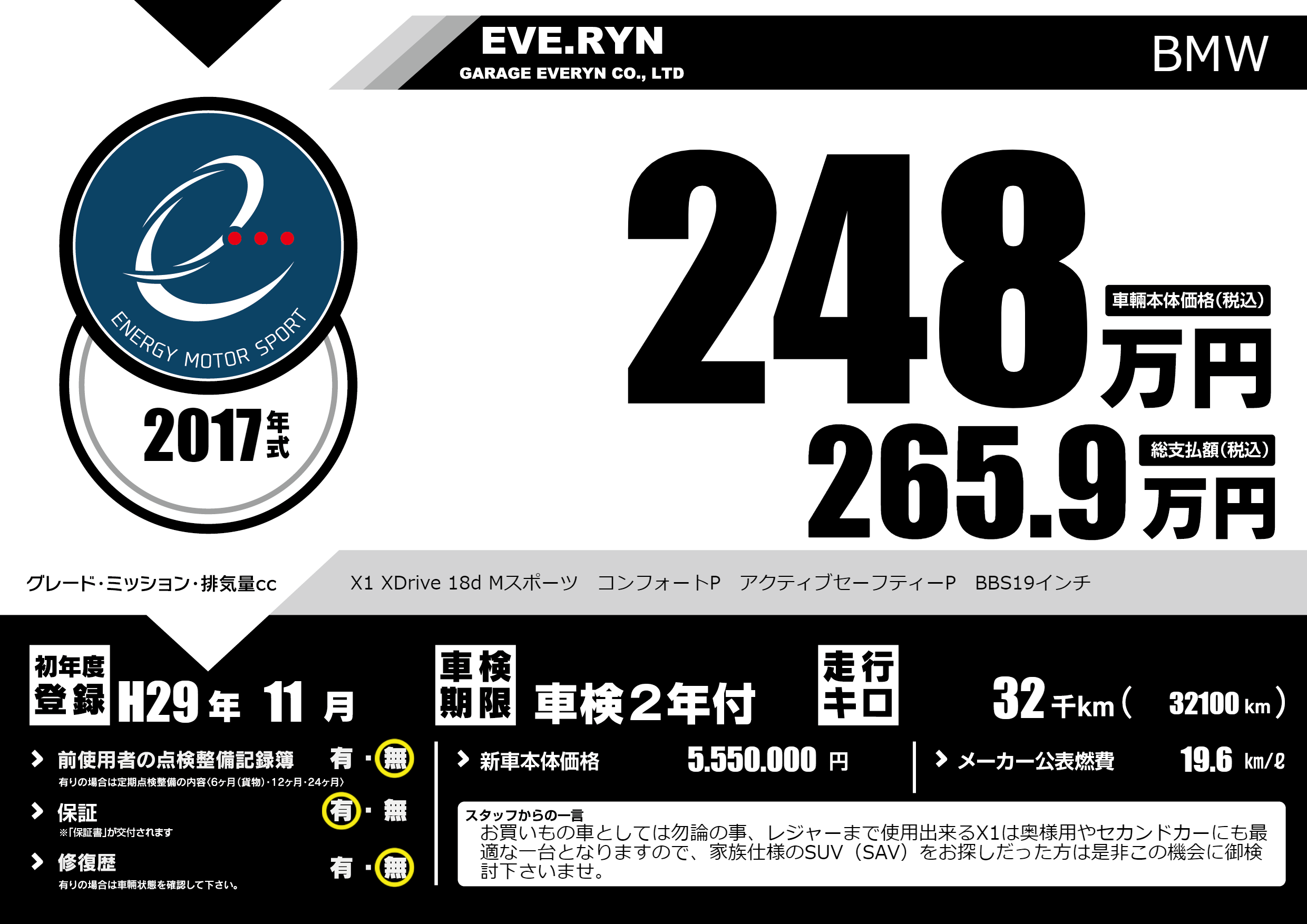 X1 XDrive 18d Mスポーツ コンフォートP アクティブセーフティーP BBS19インチ |