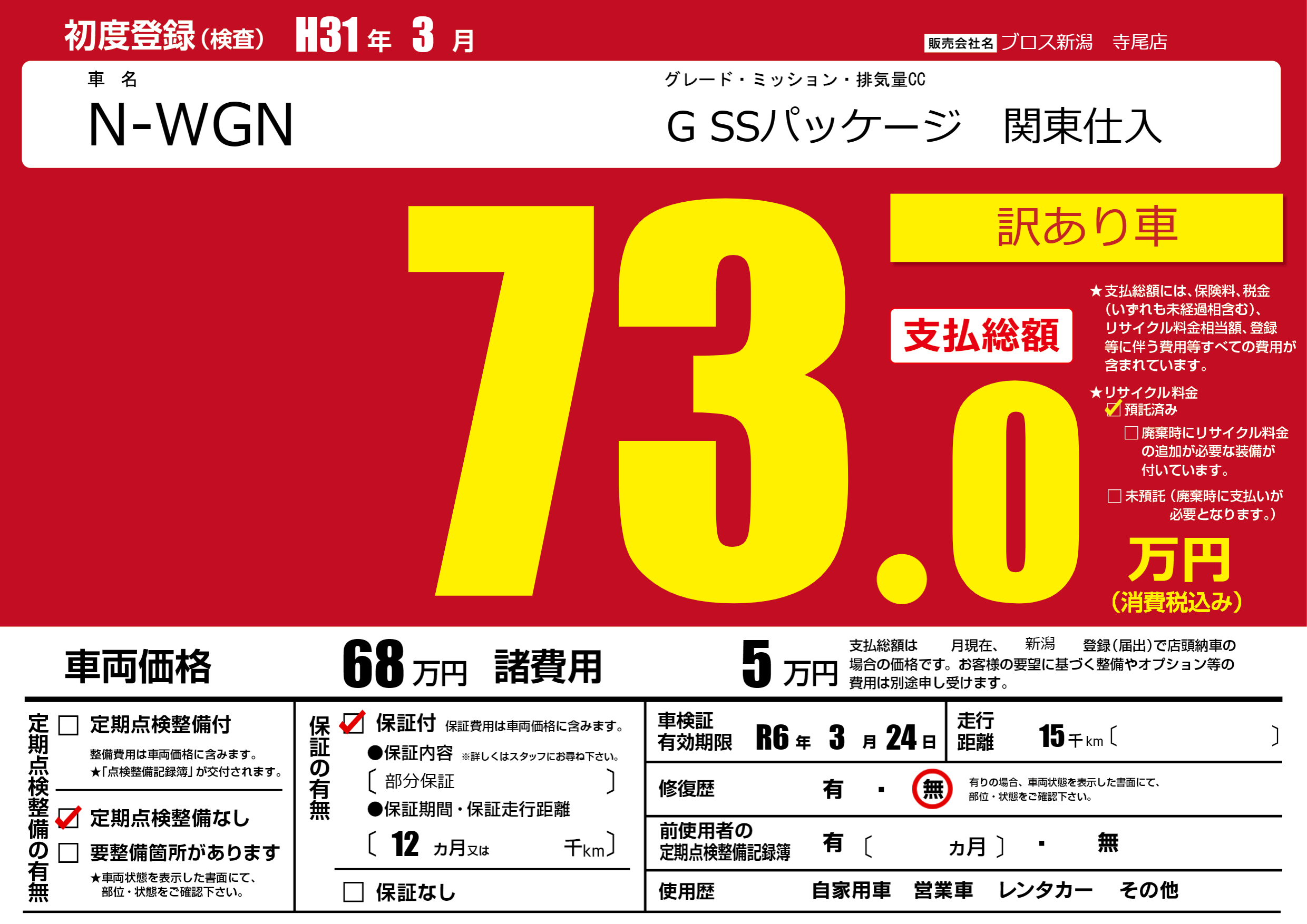 | 車名 | N-WGN | グレード ミッション 排気量 |