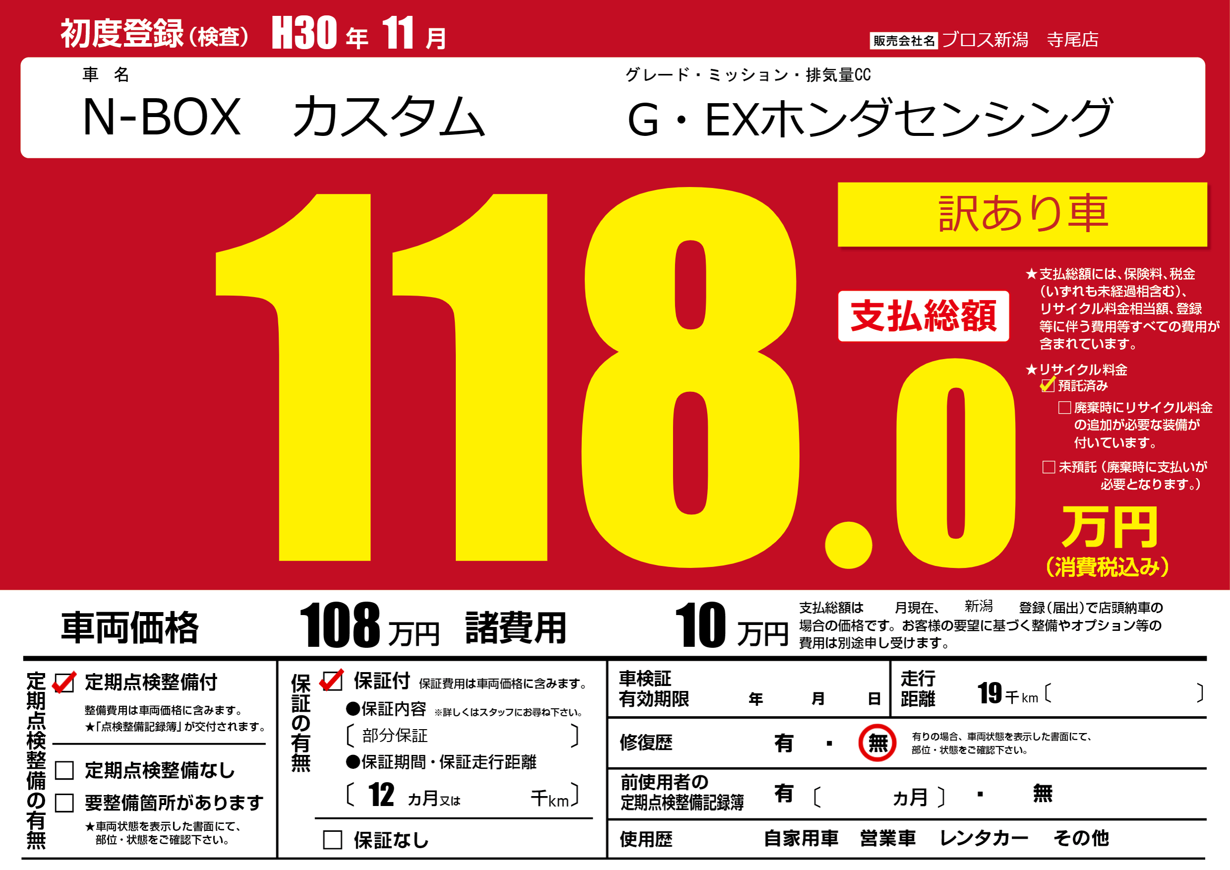 | 車名 | N-BOX カスタム | グレード ミッション 排気量 |