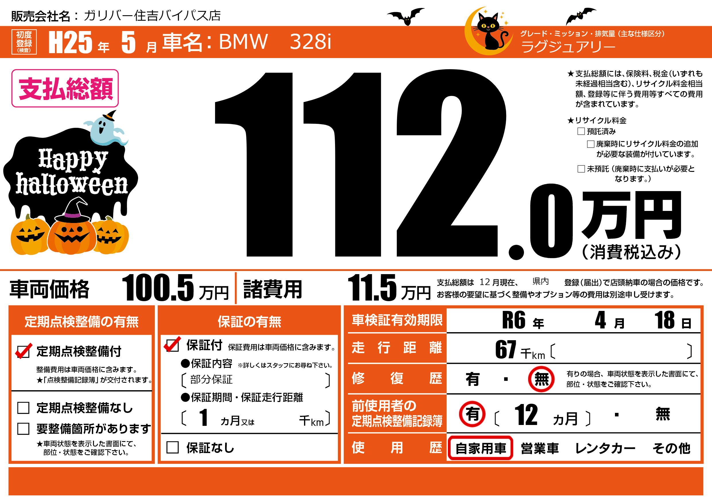 | 走行キロ | 6.7万km | 初年度登録 | H25年5月 |