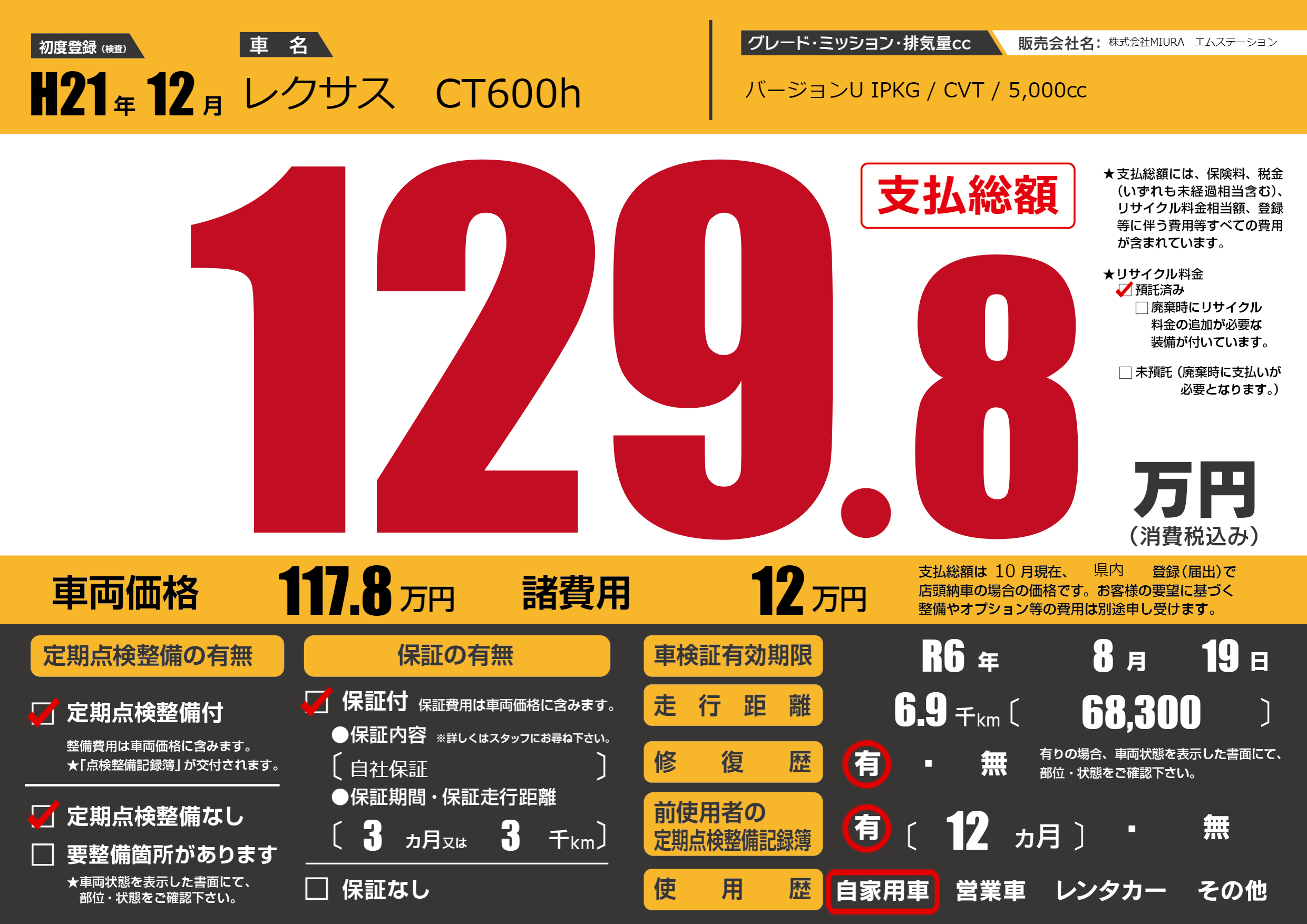 | 車検制限 | R6年 8月 19日 | ||