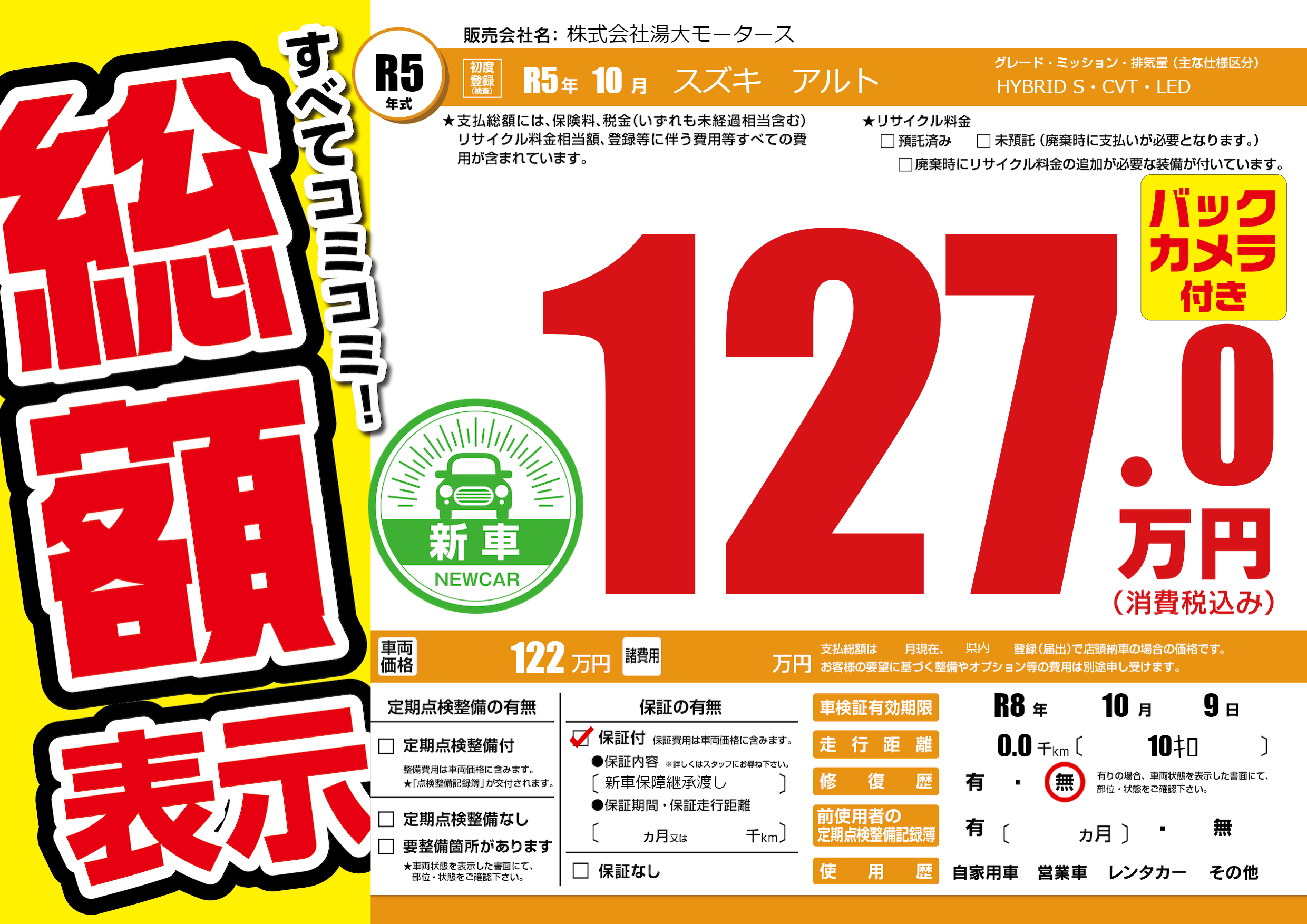 | 走行キロ | - | 初年度登録 | R5年10月 |