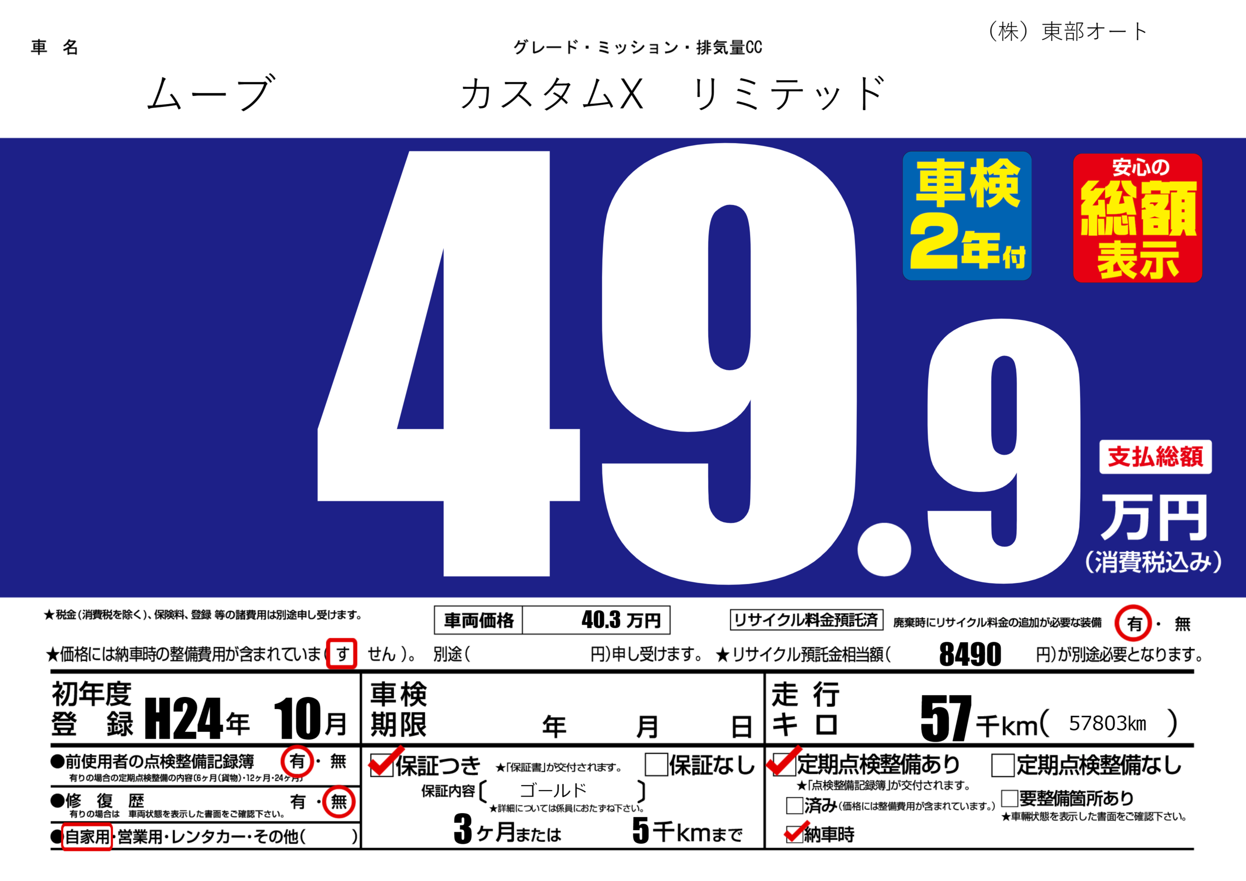 保証付き 保証内容( ゴールド) 3ヶ月または(5)千kmまで |