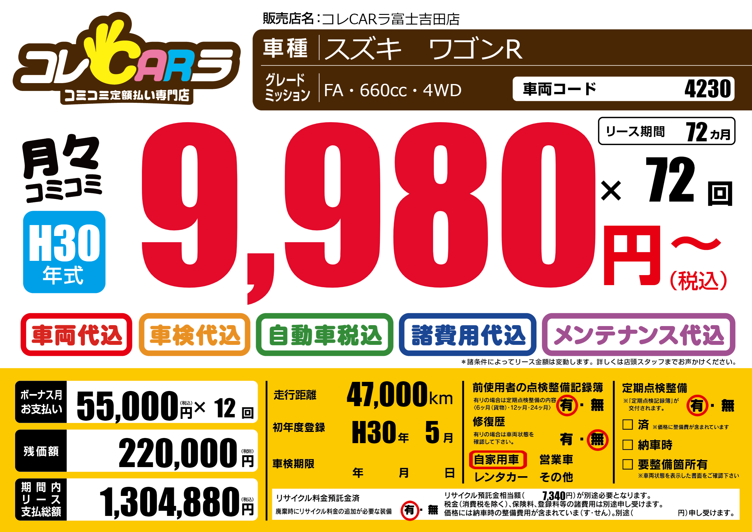| 車名 | スズキ ワゴンR | グレード ミッション 排気量 |