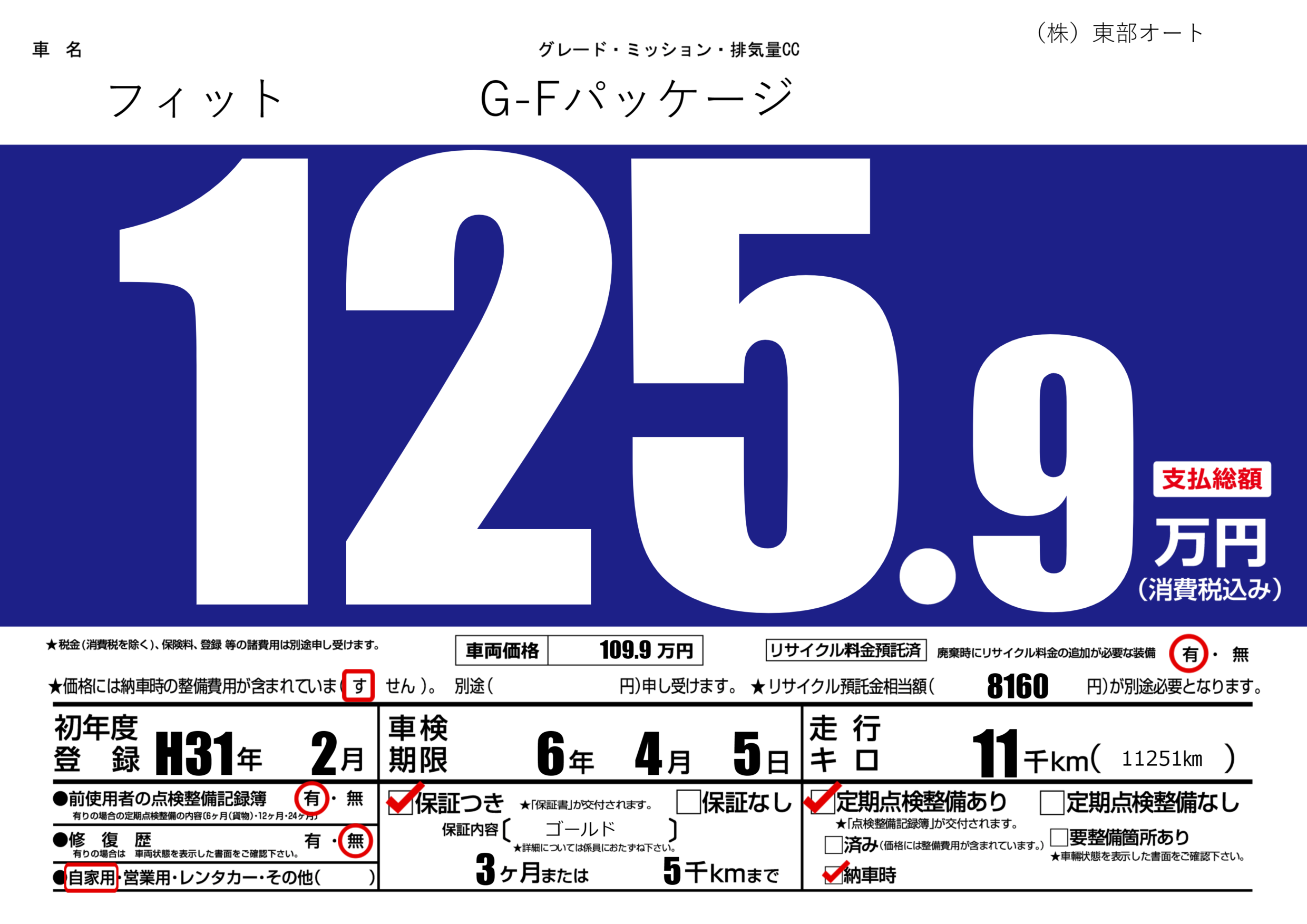 | 定期点検整備 | 定期点検整備あり 納車時あり | ||