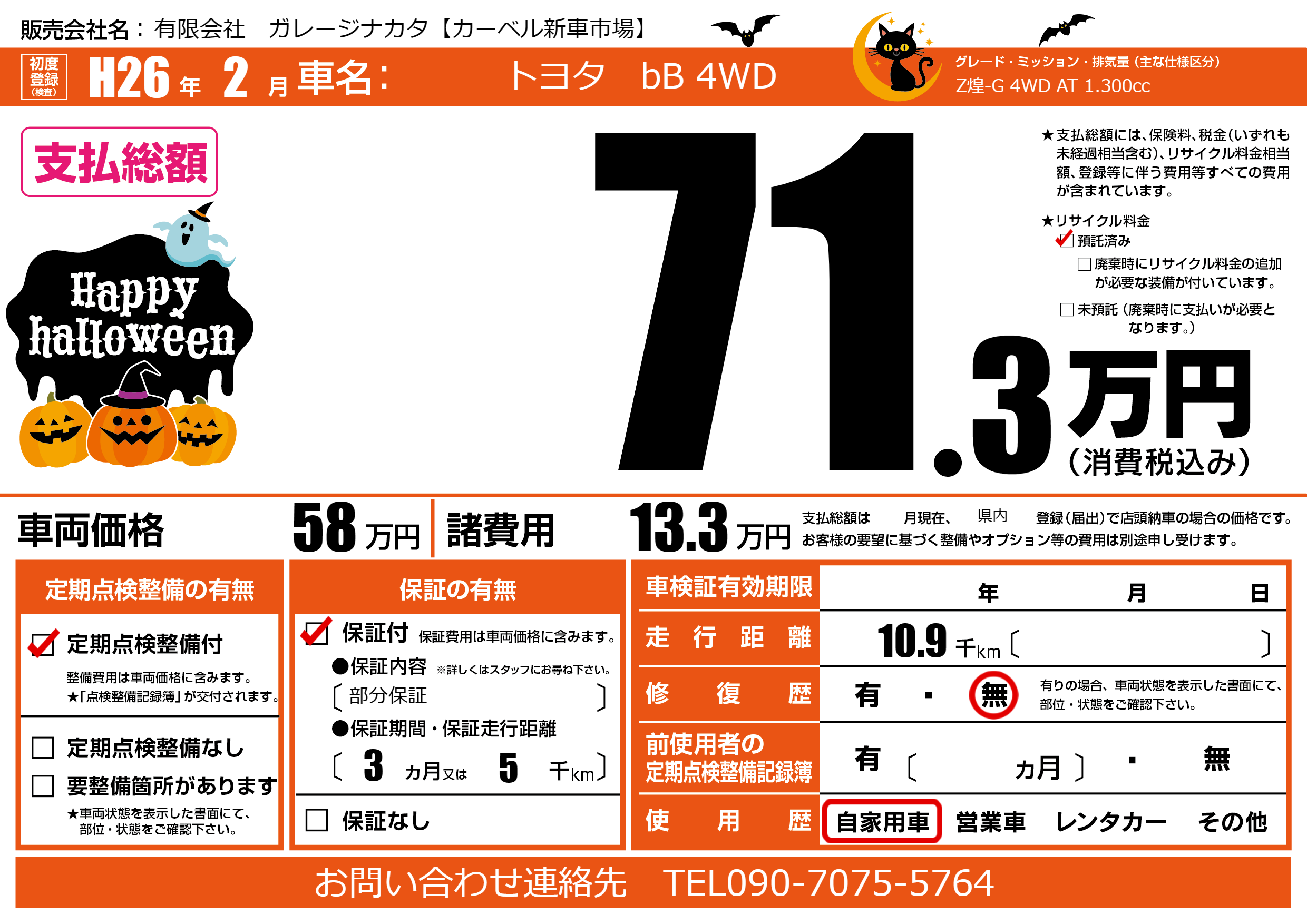 | 定期点検整備 | 定期点検整備あり | ||