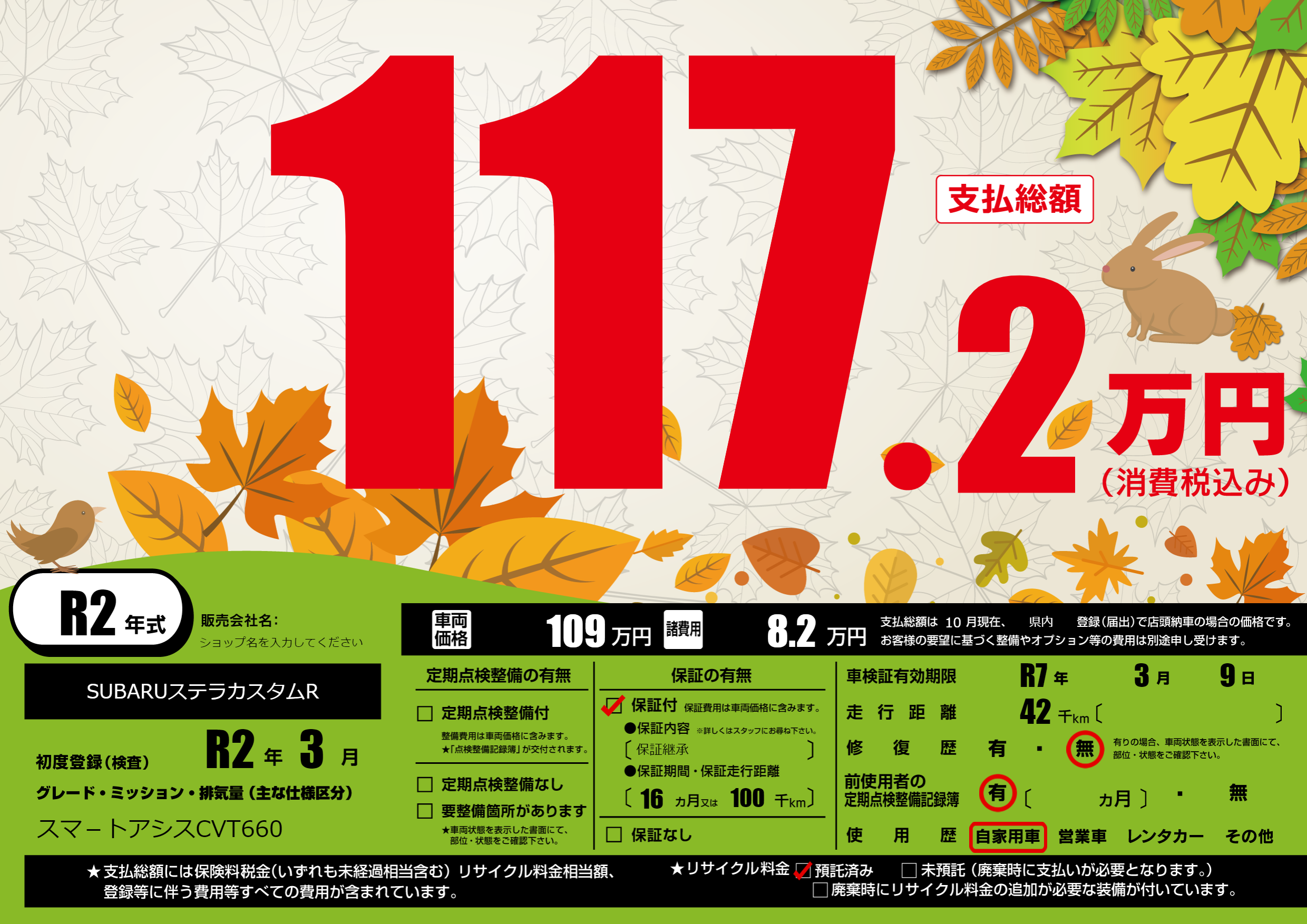 なし | 車検制限 | R7年3月9月 |