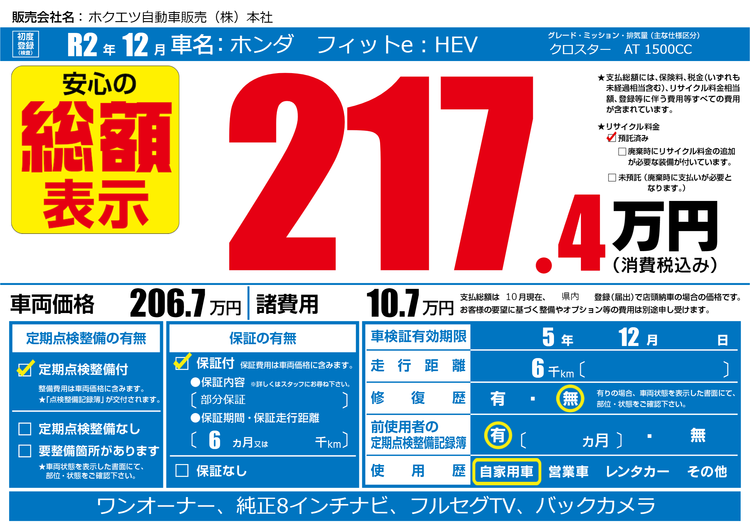 | 車検制限 | 5年 12月 - 日 | ||