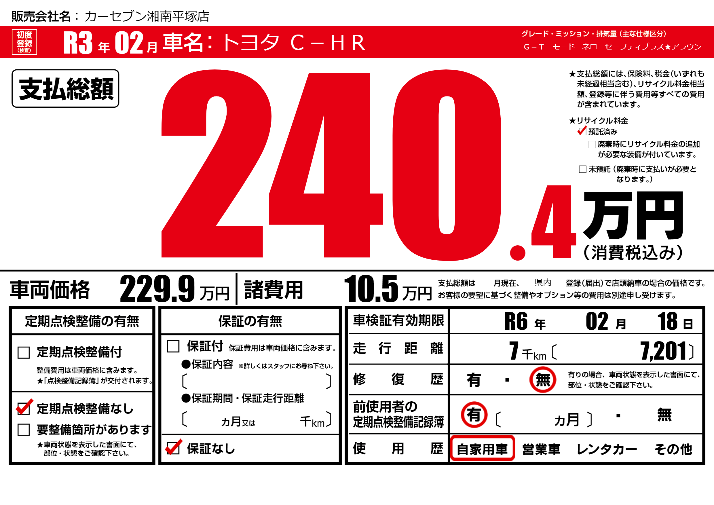 | 車検制限 | R6年 02月 18日 | ||