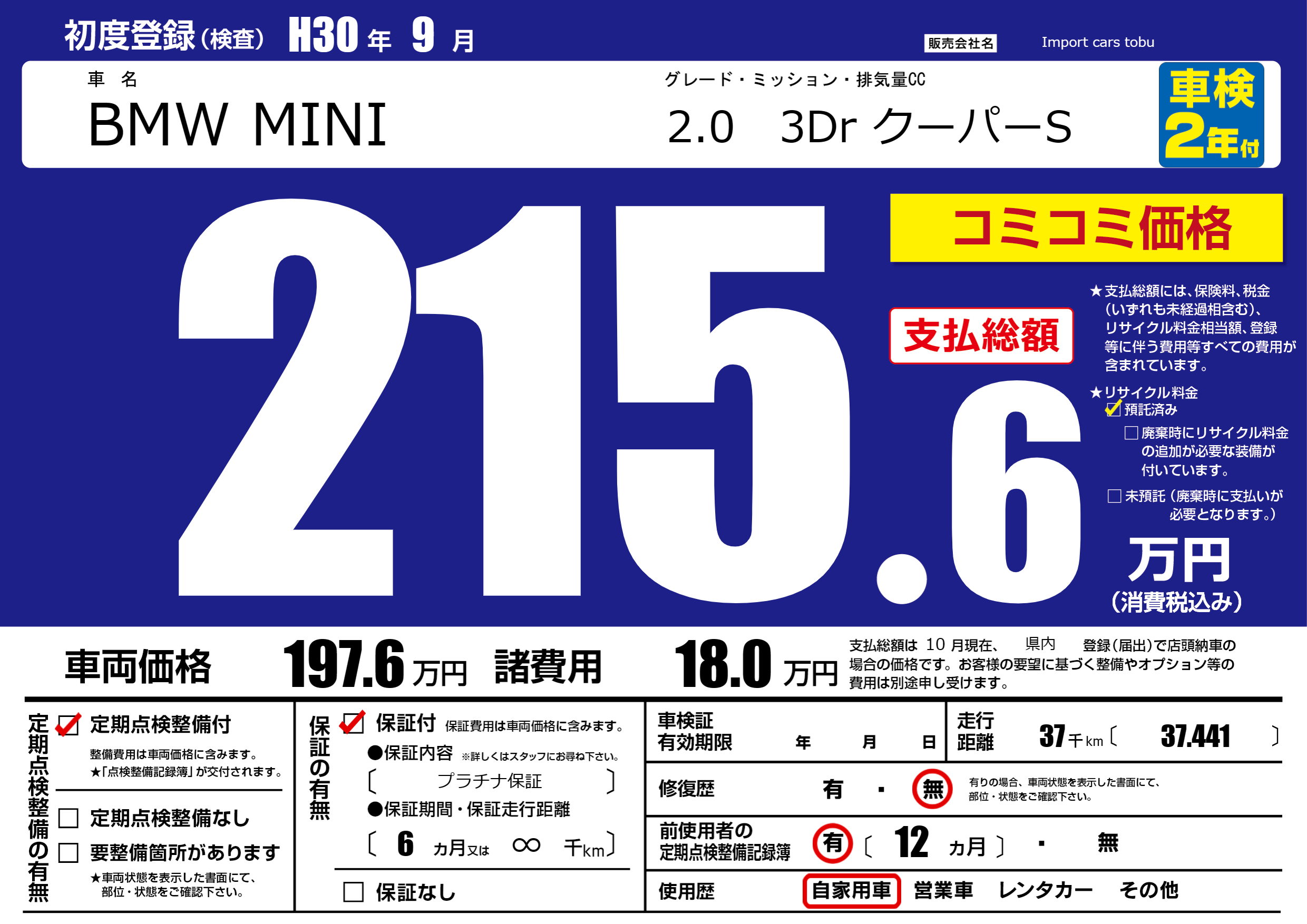保証付き 保証内容( プラチナ保証) 6ヶ月または(∞)千kmまで |
