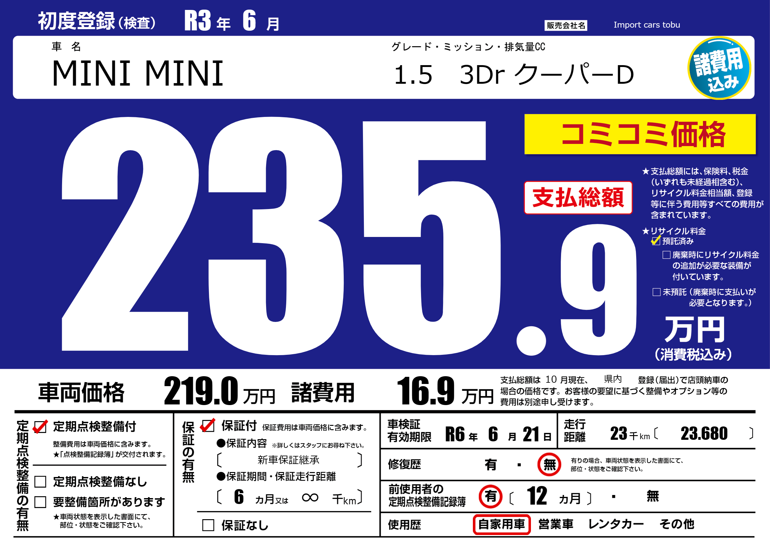 | 車検制限 | R6年 6月 21日 | ||