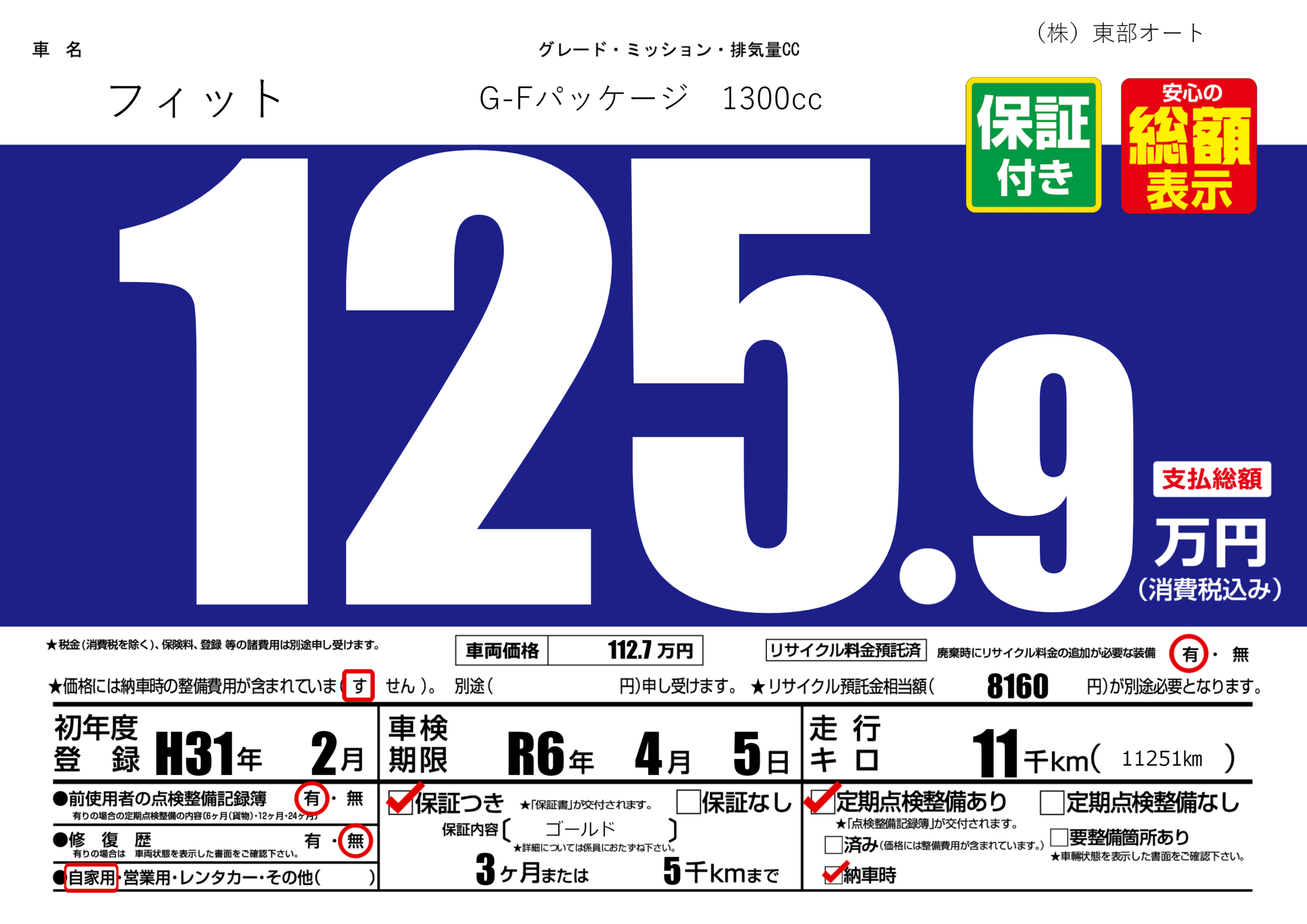 保証付き 保証内容( ゴールド) 3ヶ月または(5)千kmまで |