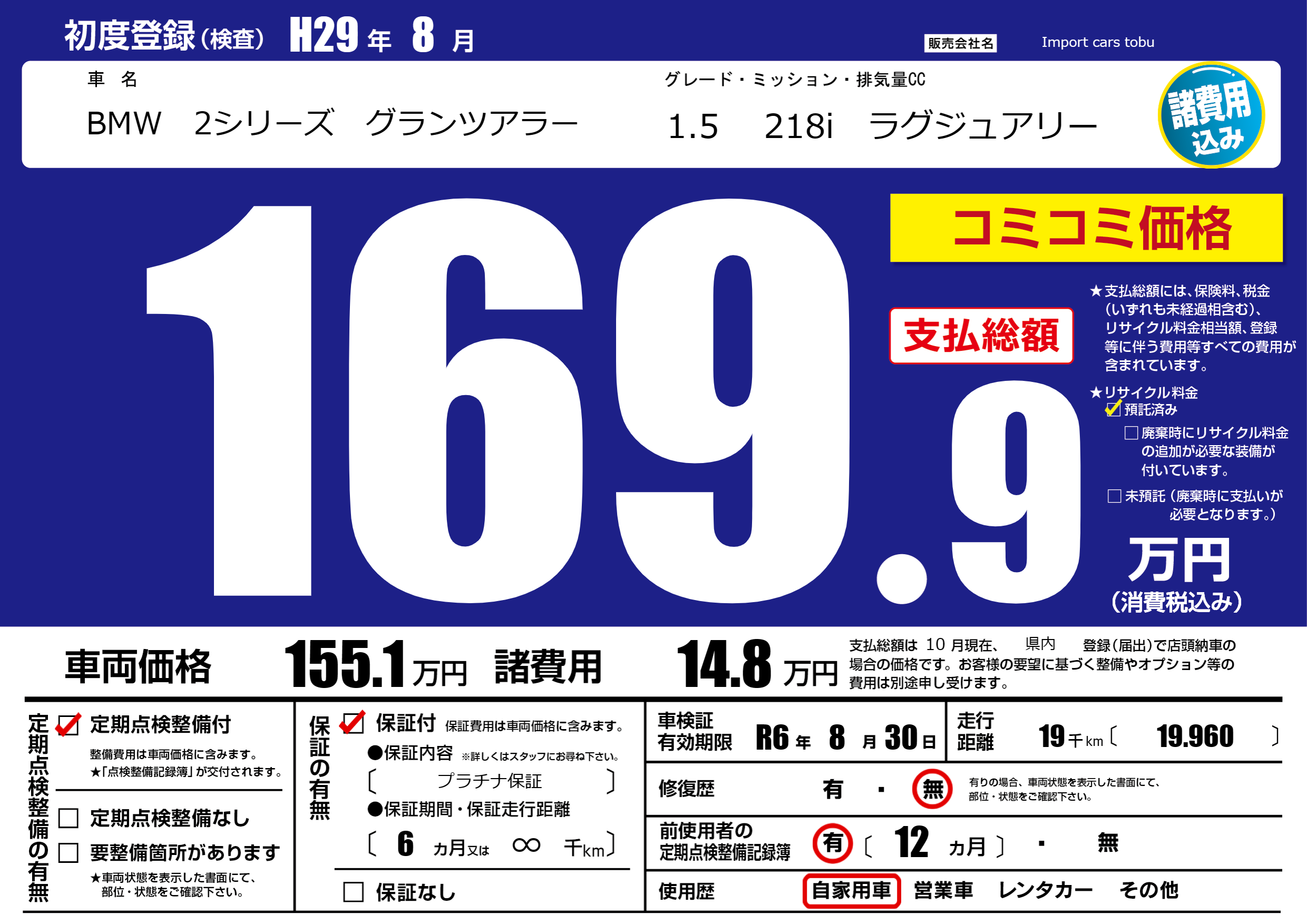 保証付き 保証内容( プラチナ保証) 6ヶ月または(∞)千kmまで |