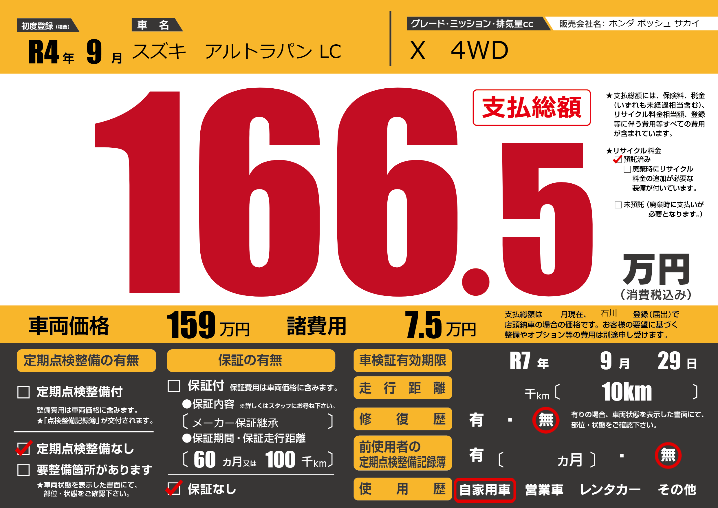 | 走行キロ | - | 初年度登録 | R4年9月 |