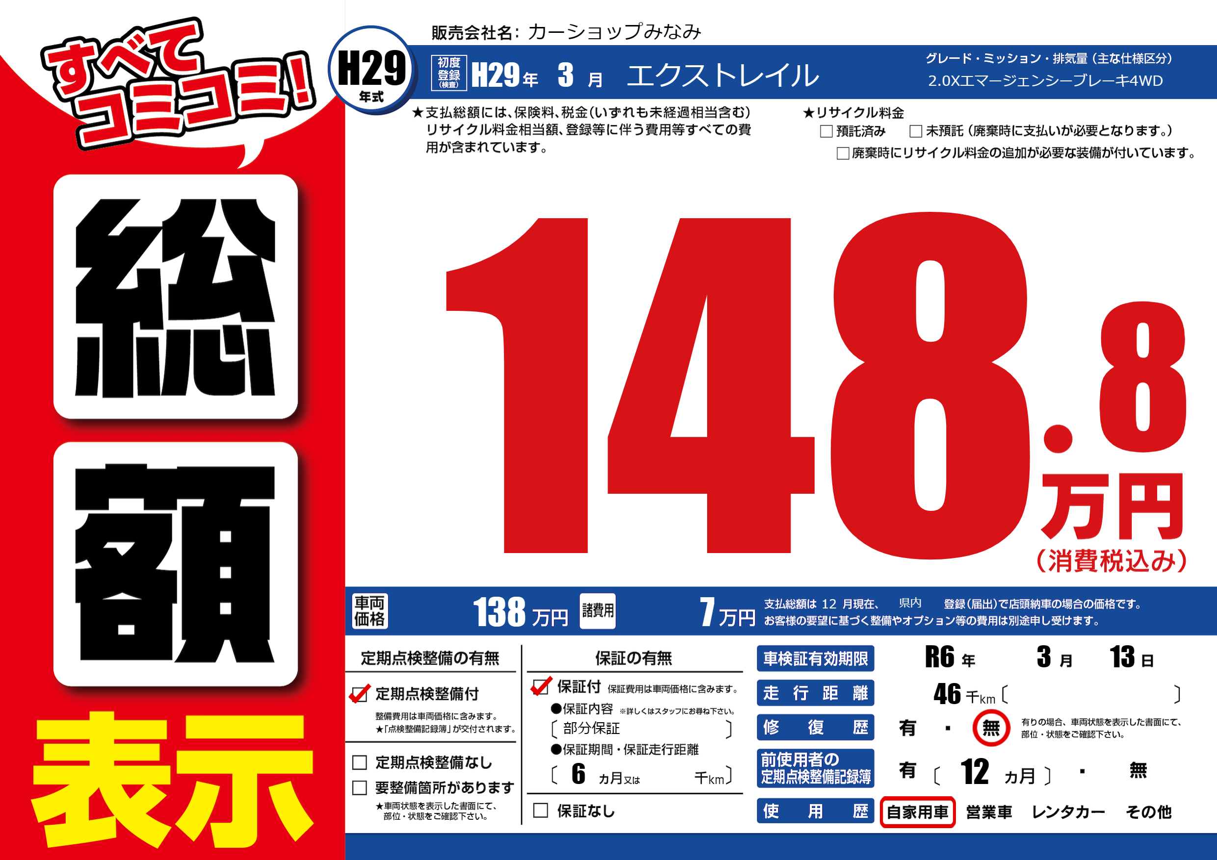 | 車名 | エクストレイル | グレード ミッション 排気量 |