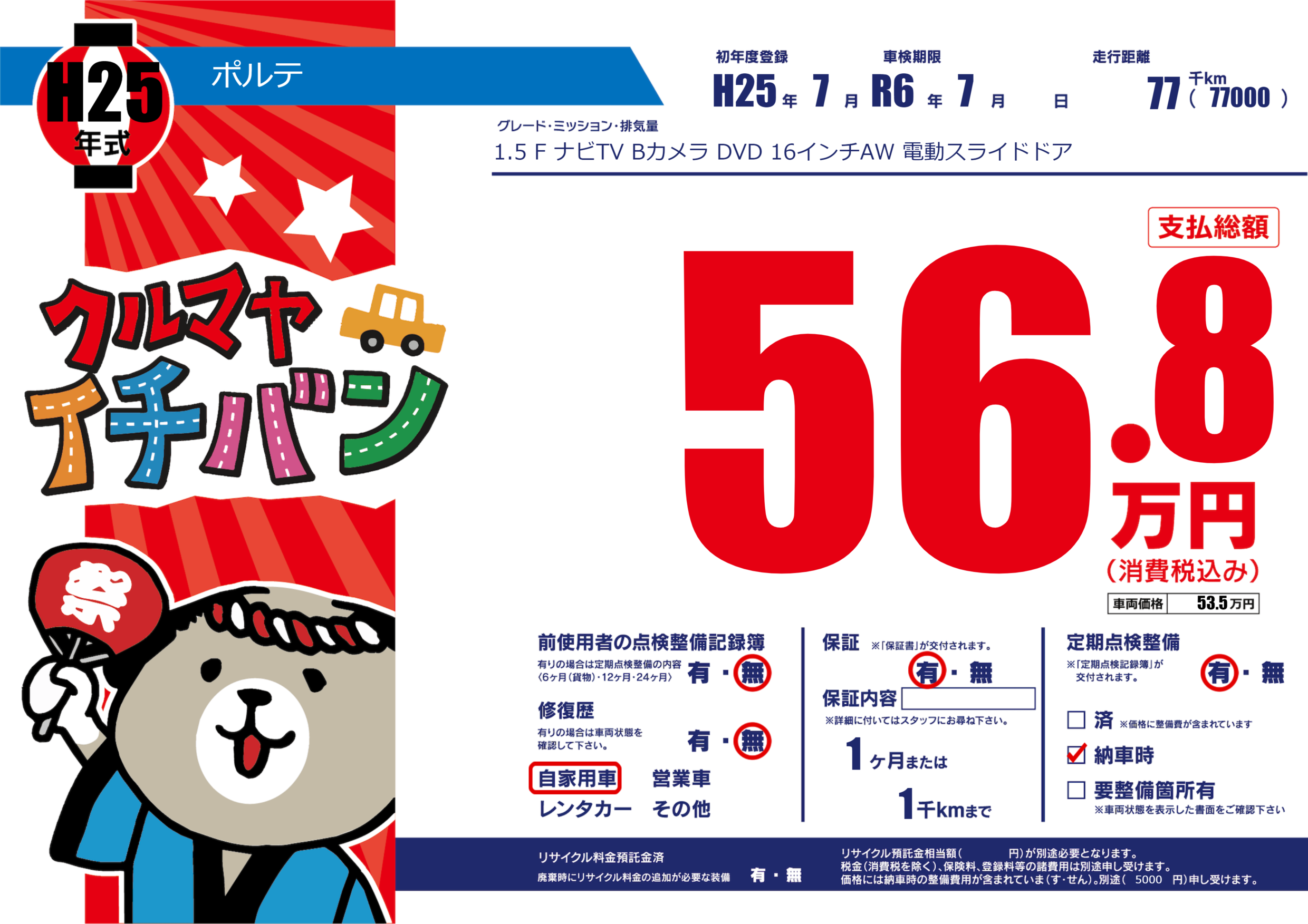 車検制限 | R6年7月---月 |