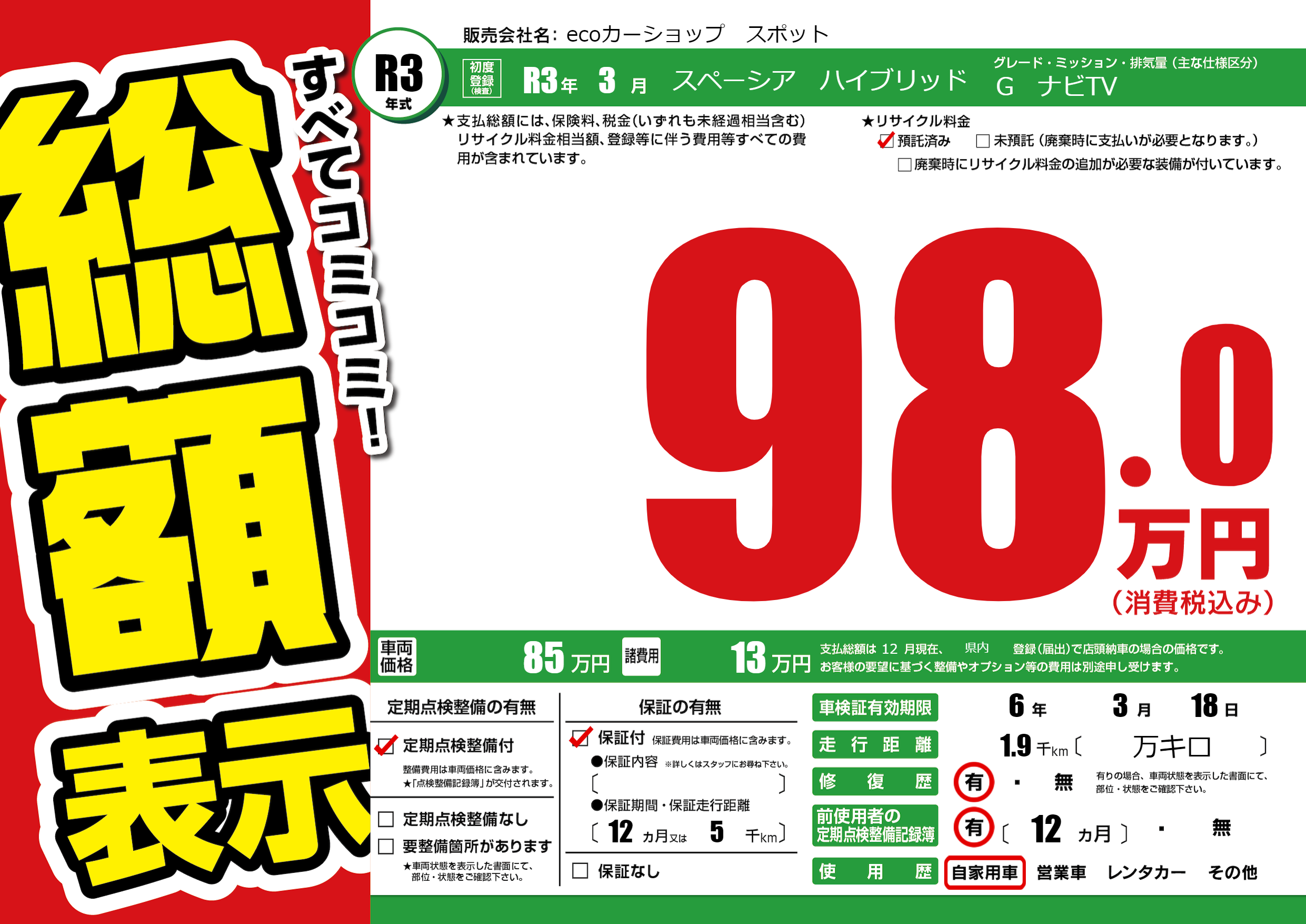 なし | 車検制限 | 6年3月18月 |