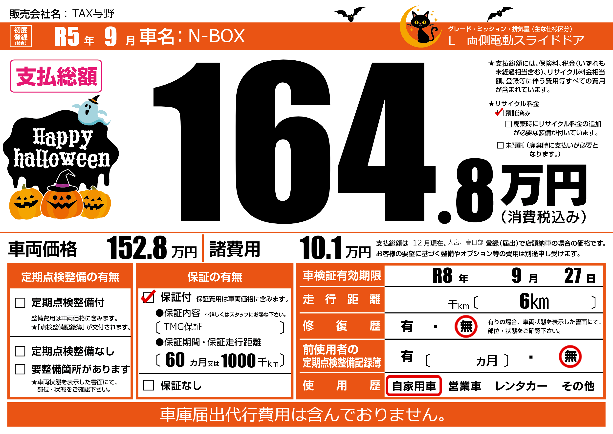 | 走行キロ | - | 初年度登録 | R5年9月 |