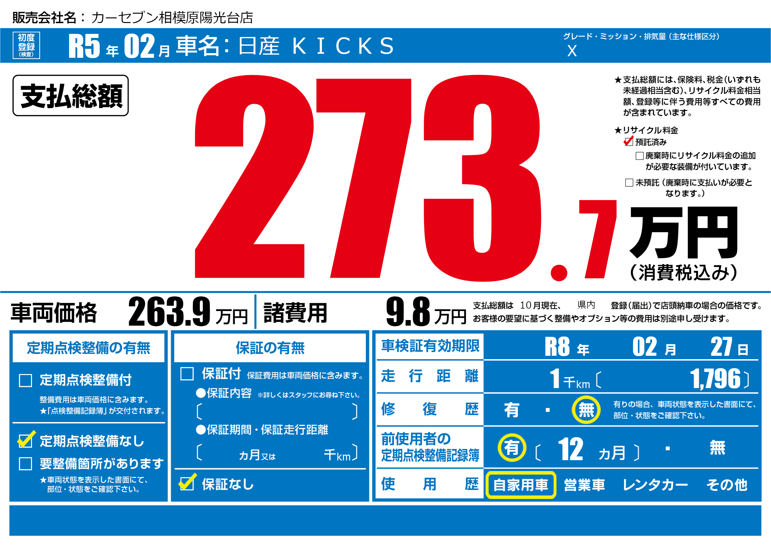 | 定期点検整備 | 定期点検整備なし | ||