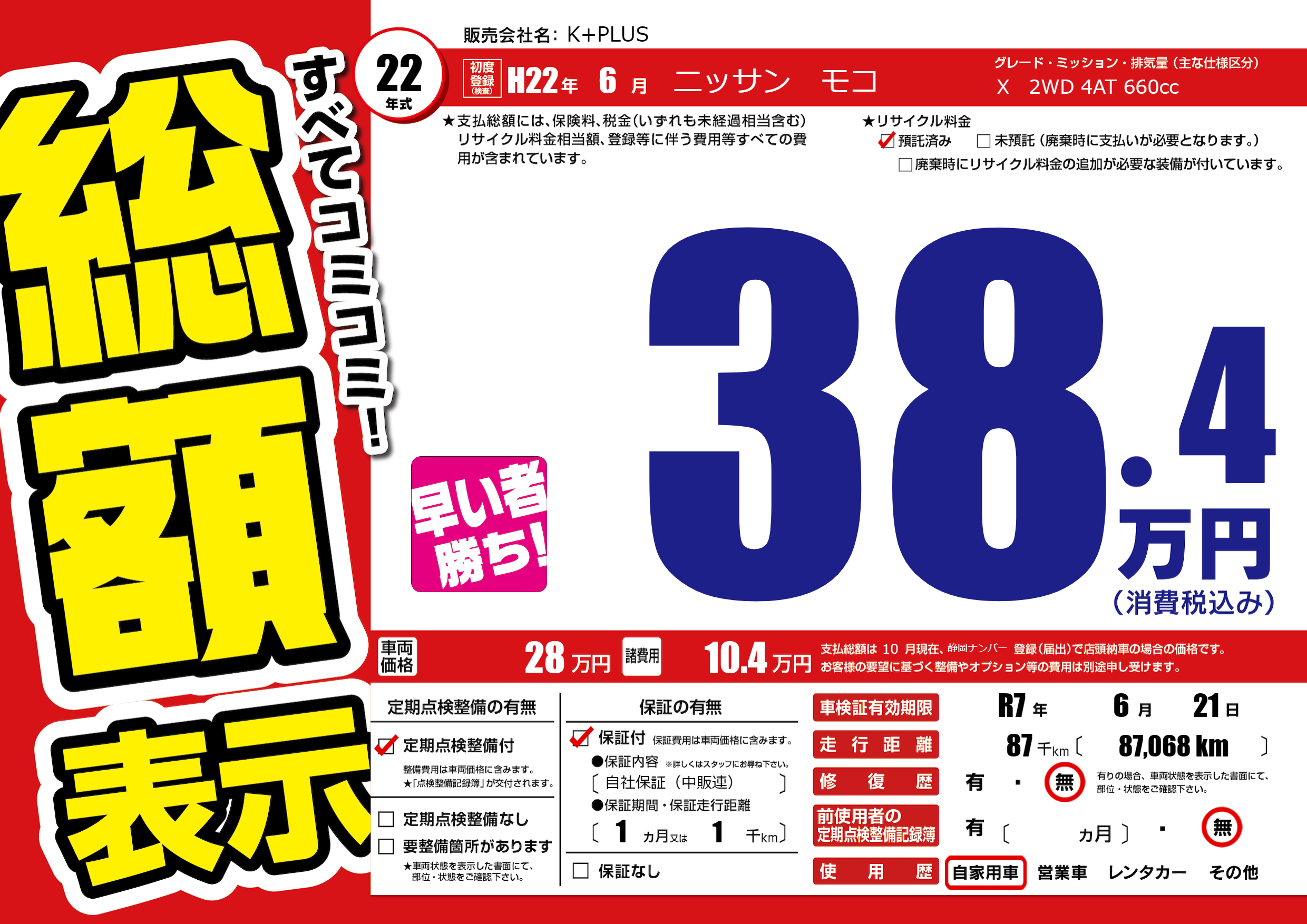 | 車名 | ニッサン モコ | グレード ミッション 排気量 |