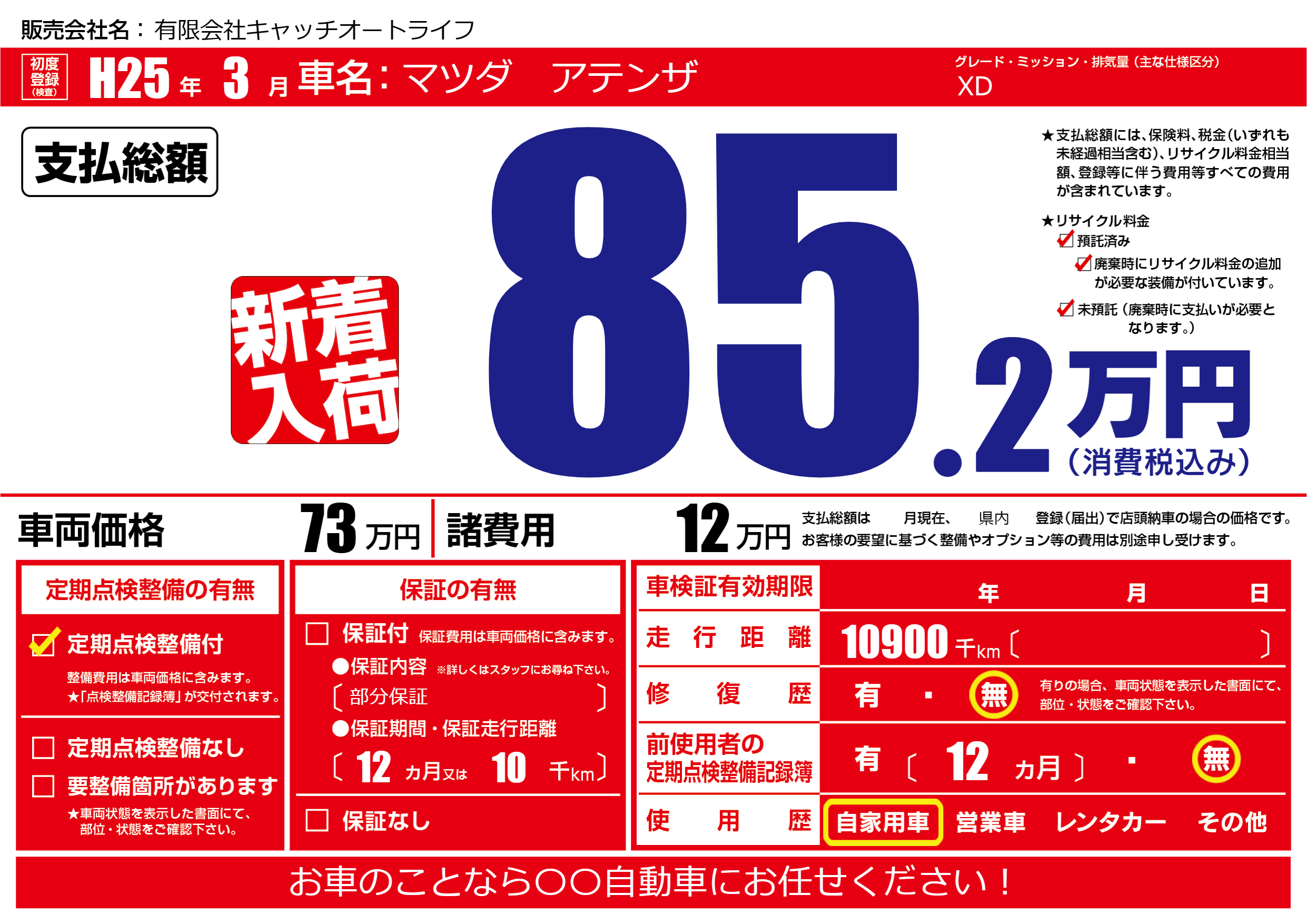 | 定期点検整備 | 定期点検整備あり | ||