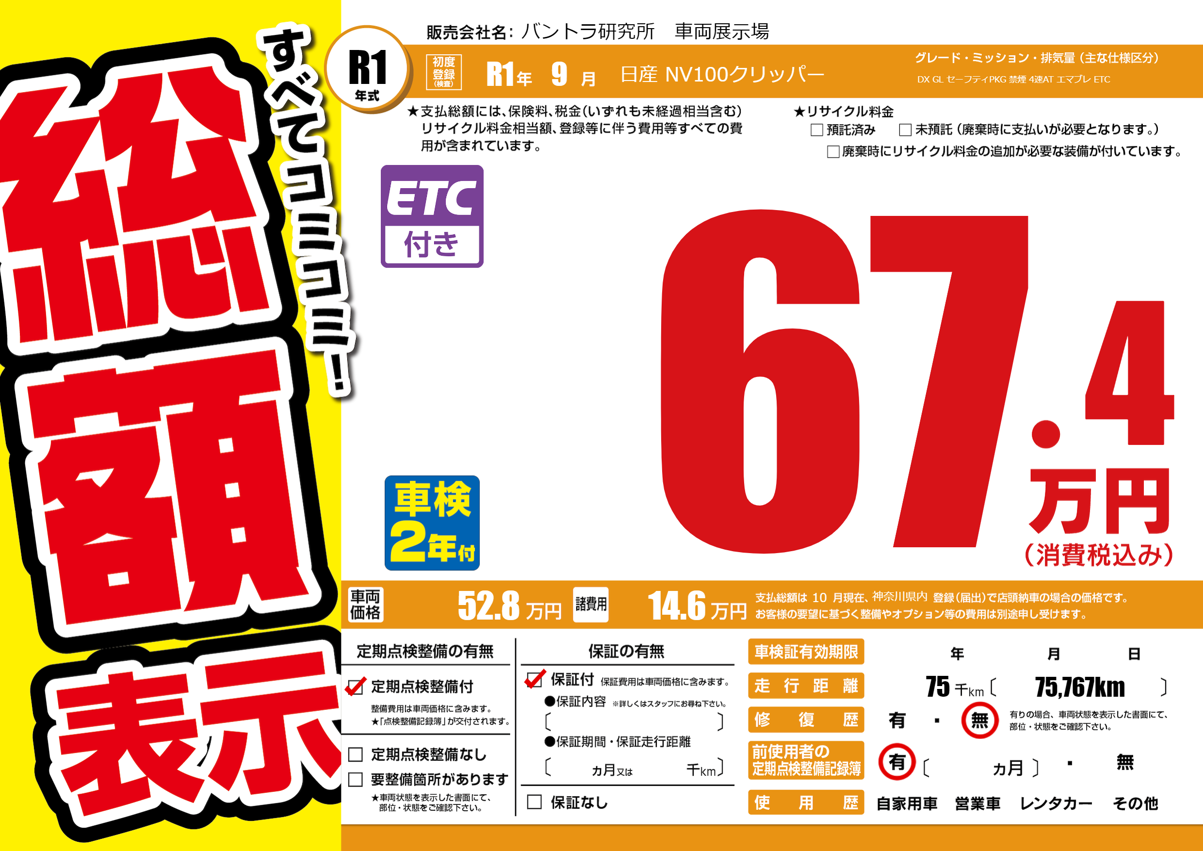 | 車名 | 日産 NV100クリッパー | グレード ミッション 排気量 |