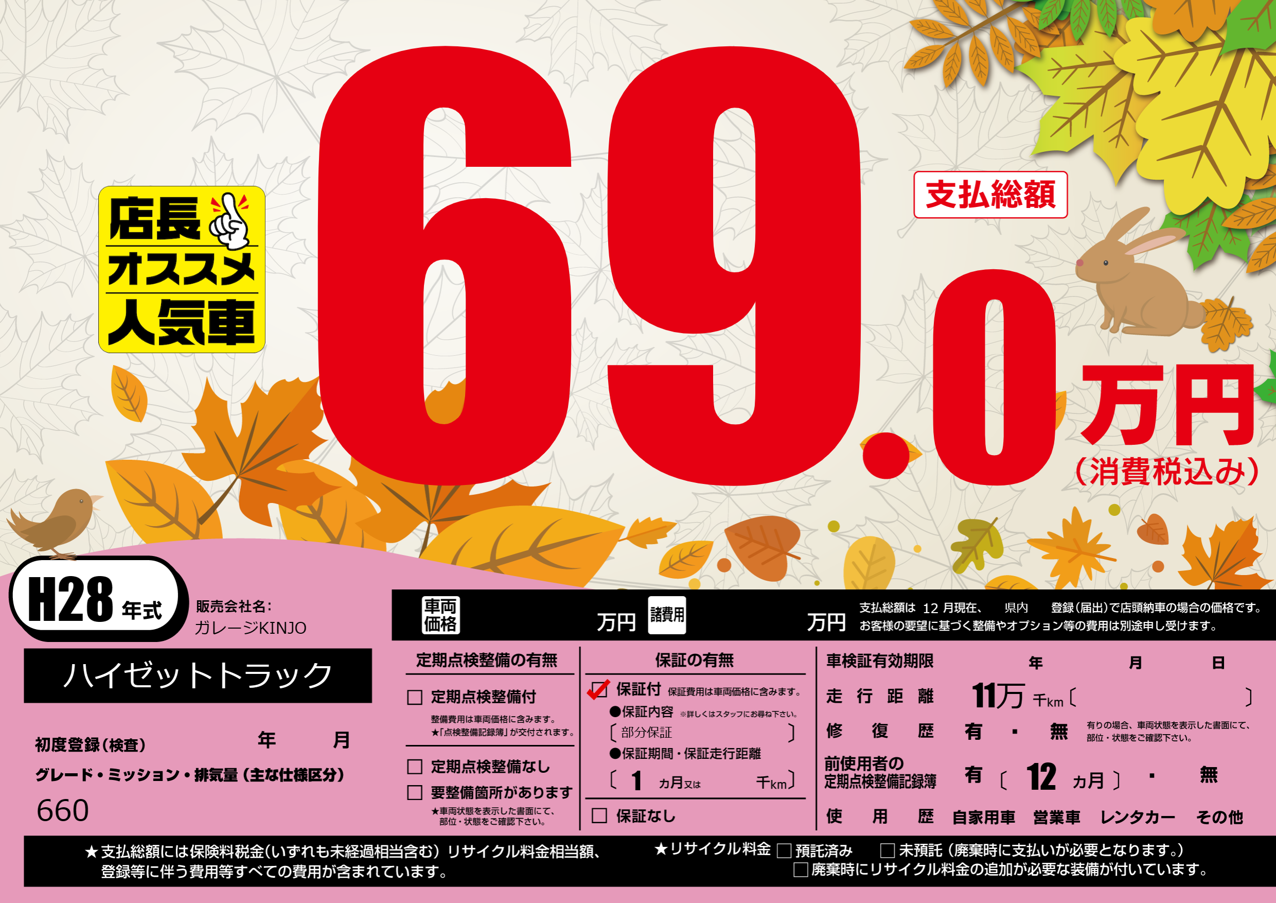 保証付き 保証内容(部分保証) 1ヶ月または()千kmまで |