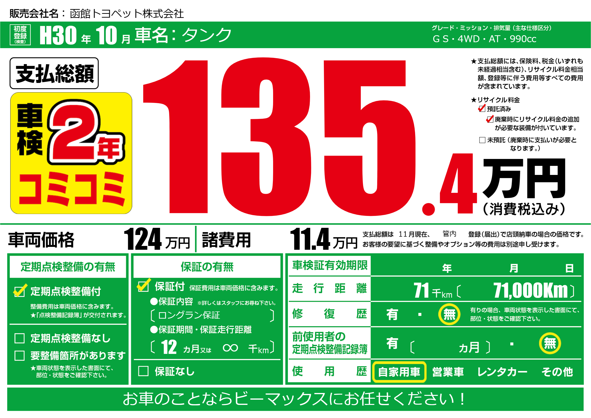 | 定期点検整備 | 定期点検整備あり | ||