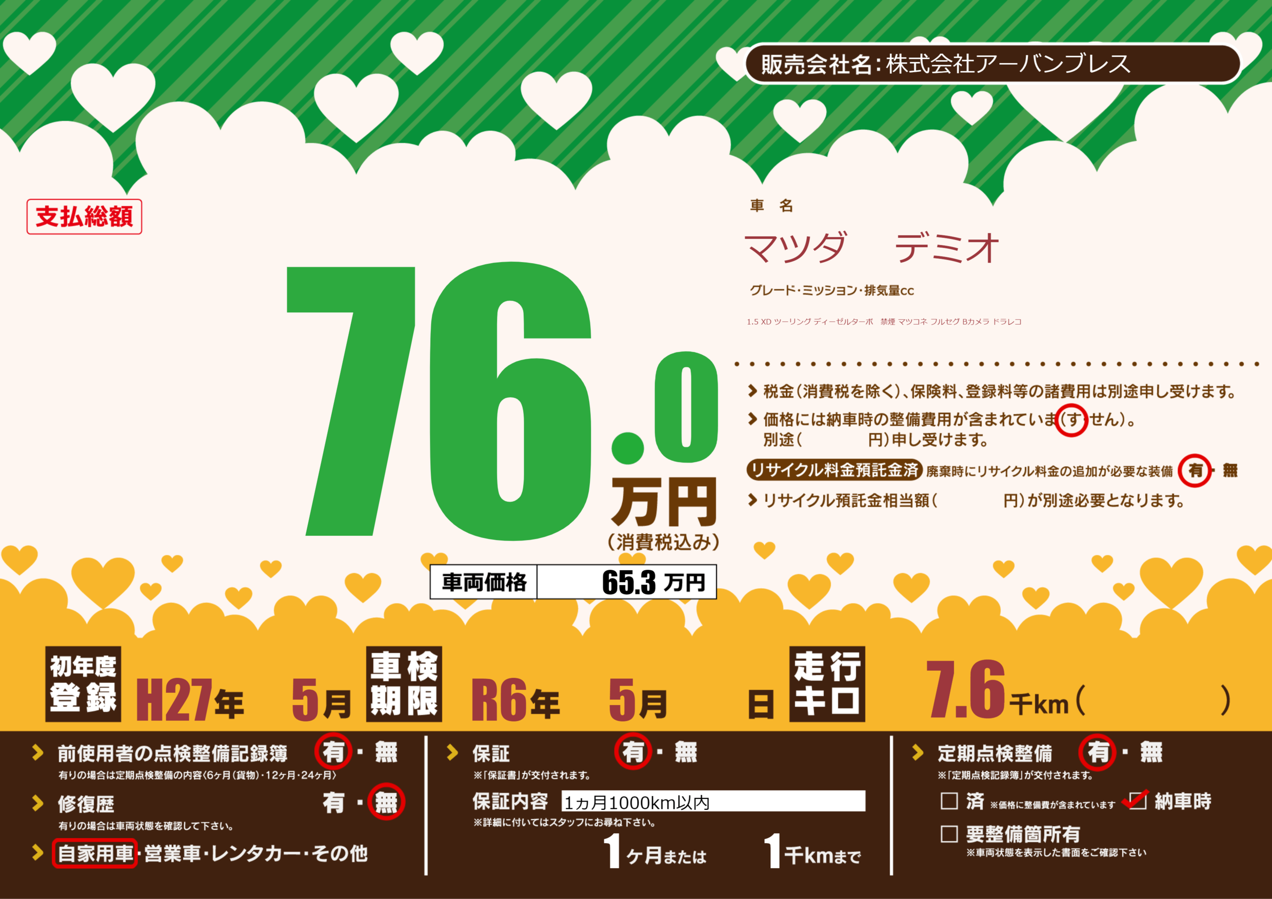 保証内容(1ヵ月1000km以内) 1ヶ月または1千km