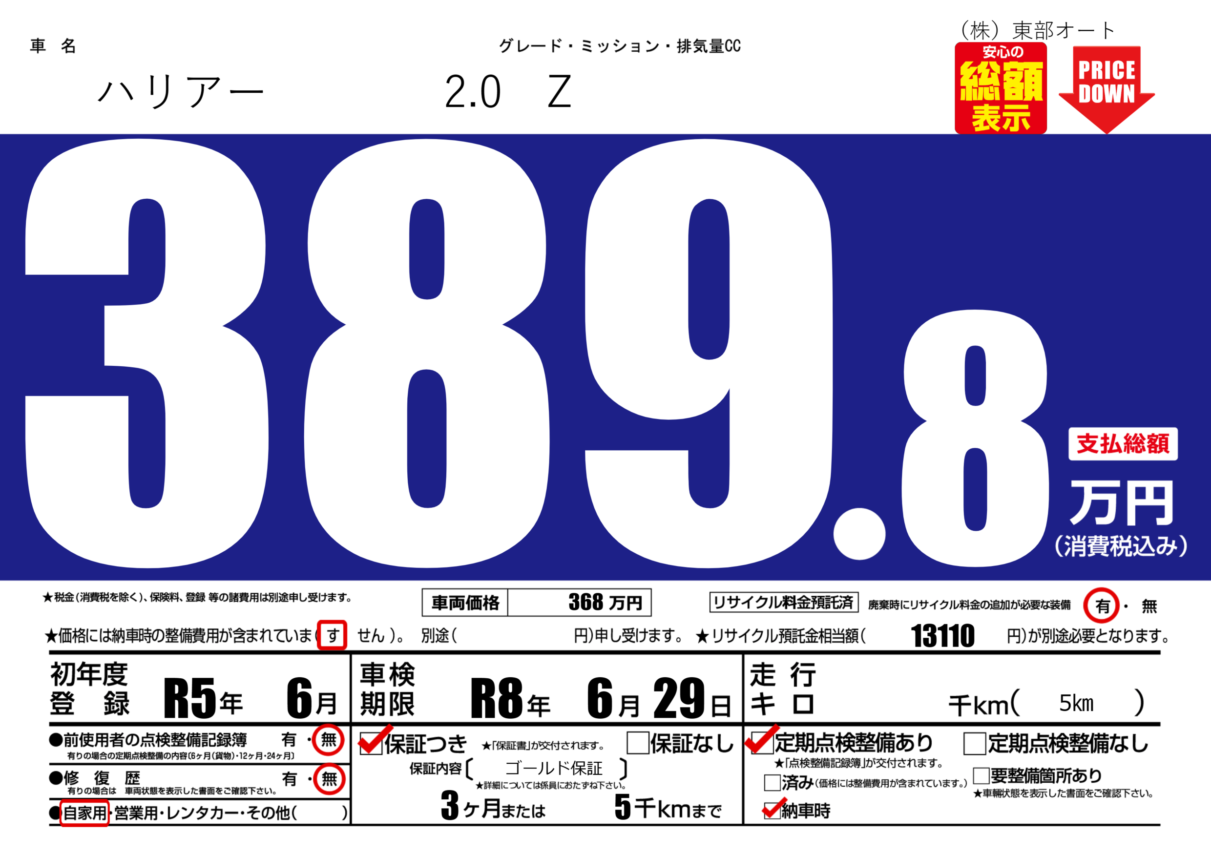 保証付き 保証内容( ゴールド保証) 3ヶ月または(5)千kmまで |