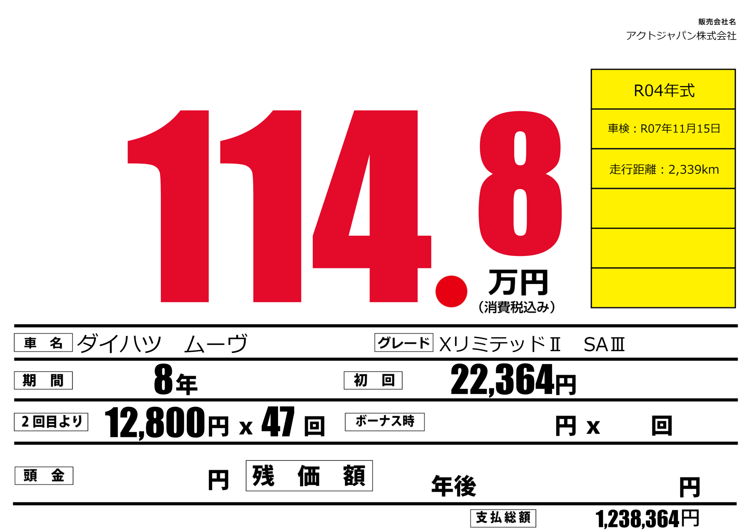 | 車名 | ダイハツ ムーヴ | グレード ミッション 排気量 |